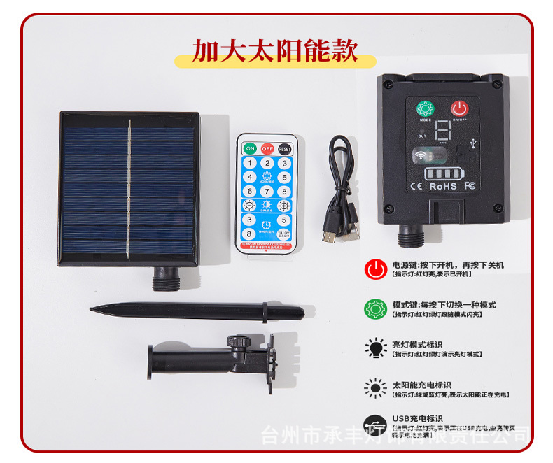 | 12 m 100 lights-highlight solar remote control + usb charging dual-use-8 functions | ¥70.68 | 8000 piece available |