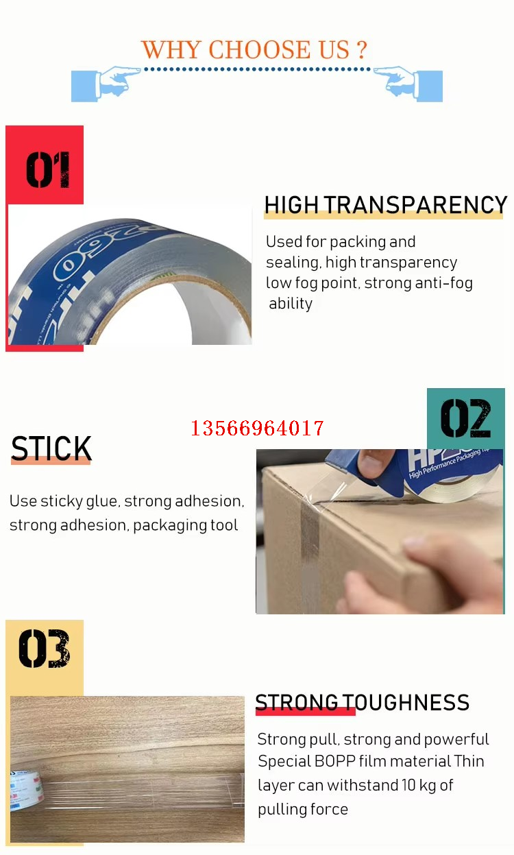 About Product:Super Clear Adhesive Bopp Sealing Transparent Packing Sticky Tape