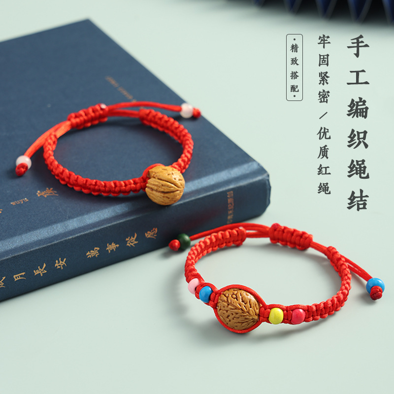 red line colorful beads walnut basket