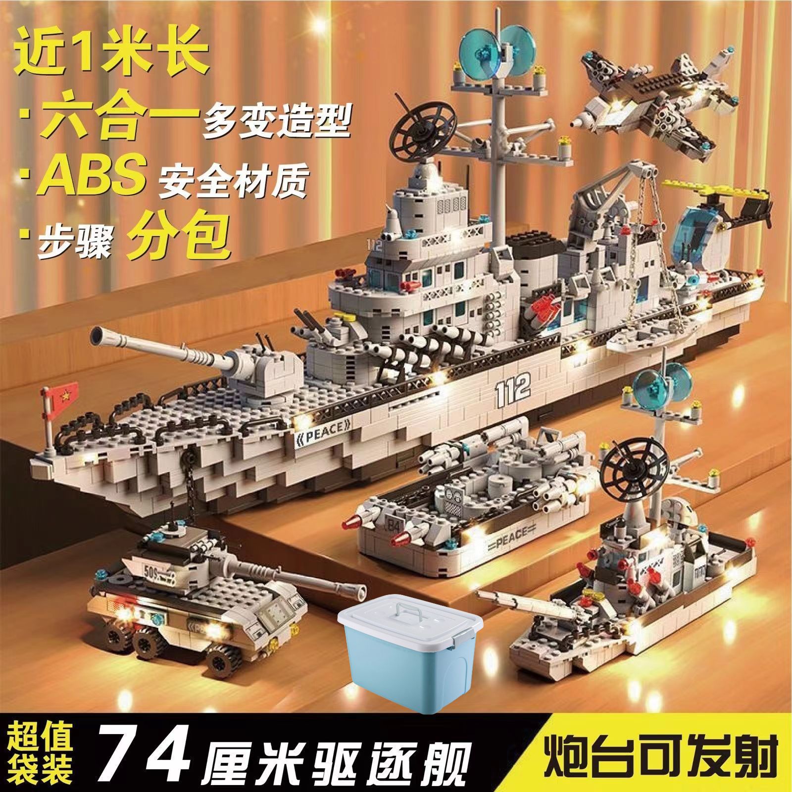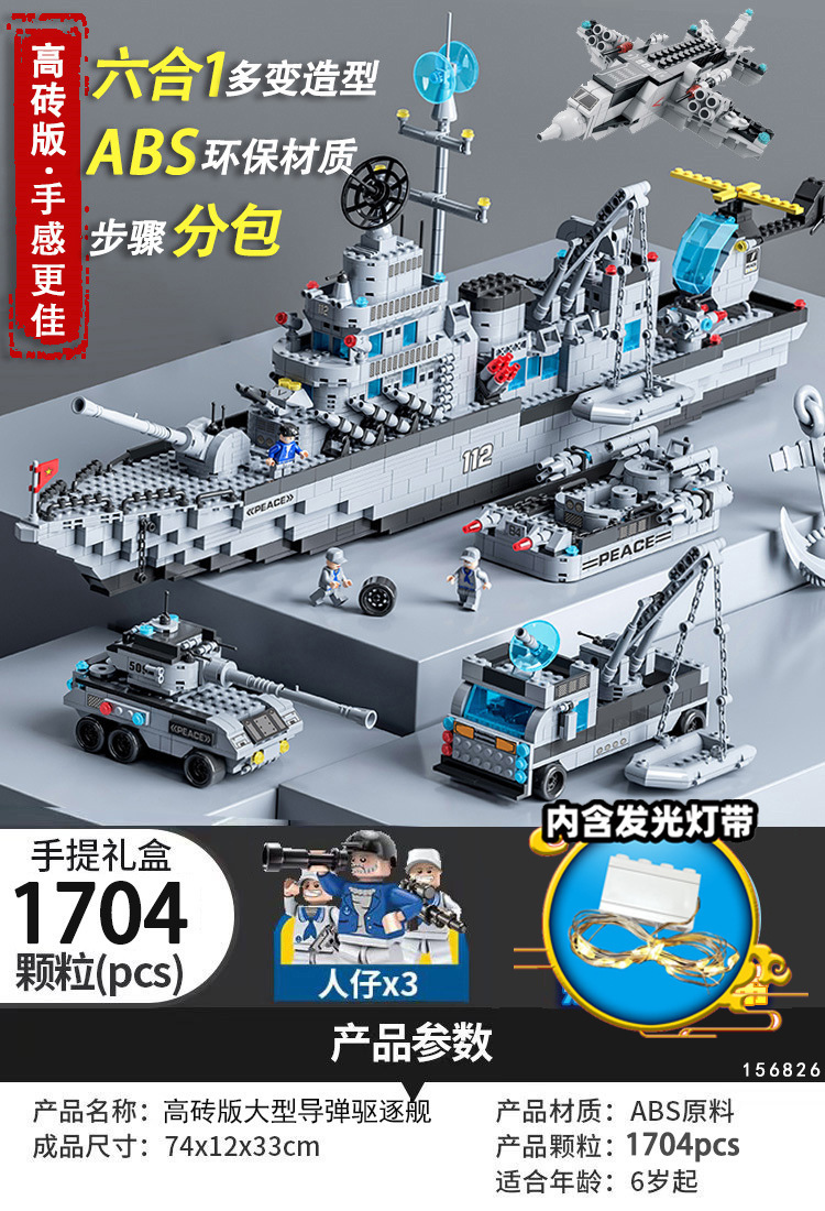 74cm guided missile destroyer + light +3 doll toy 1704 particles [luxury gift box]]