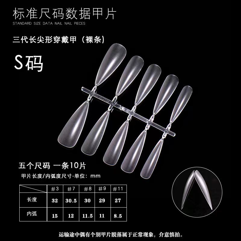 (size s) three generations of flat long tips (10 pieces/strip)