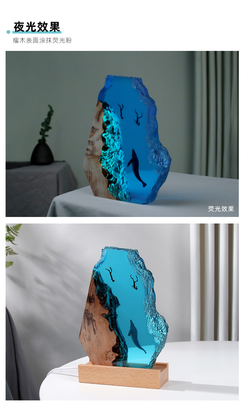 home ornament ocean whale diver art decoration solid wood resin night light gift