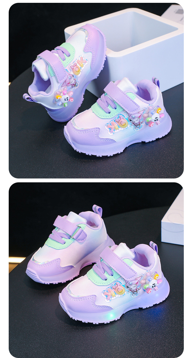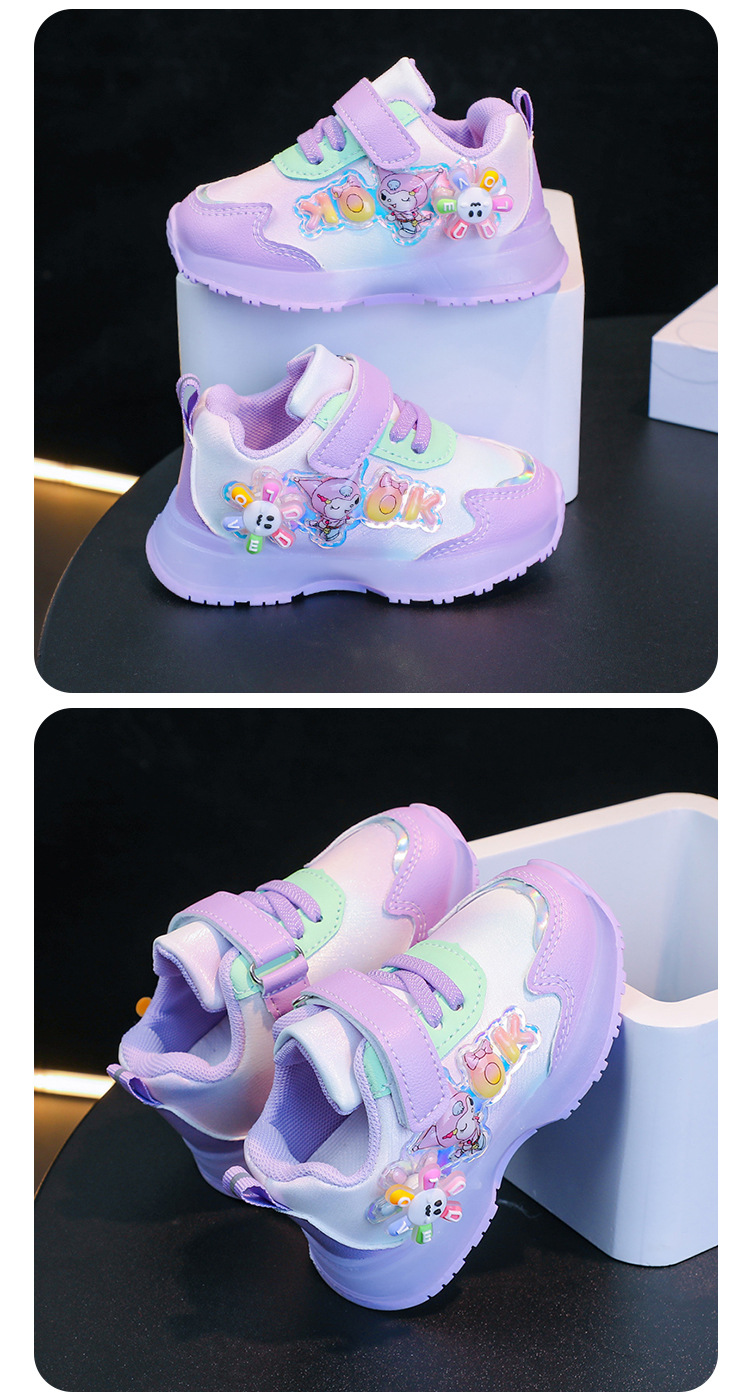 girls' sneaker 2024 autumn cartoon leather fashion soft bottom children's casual sneaker cute little kids' shoes