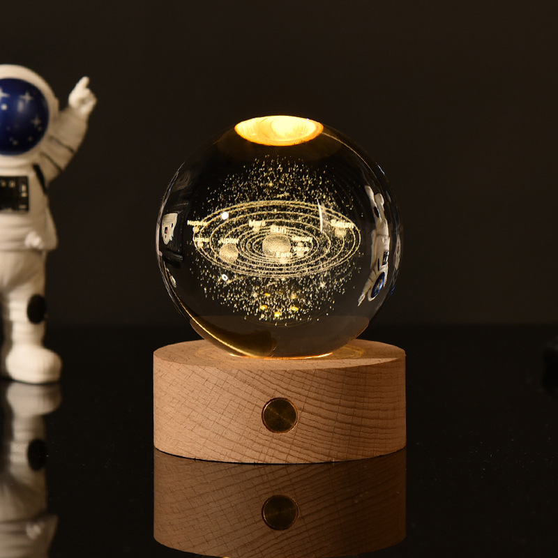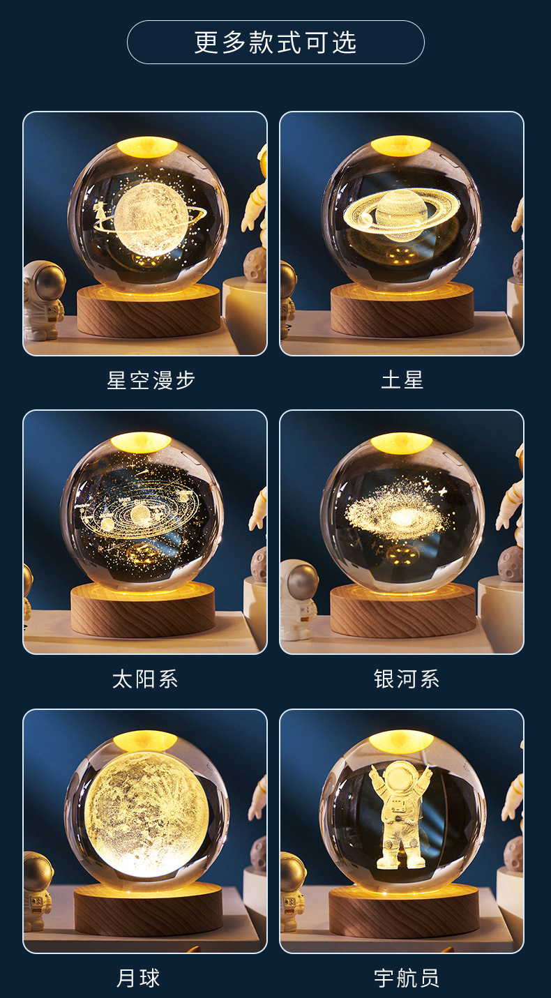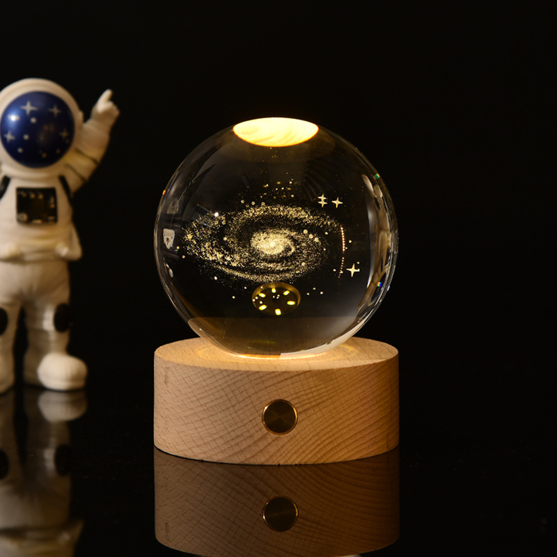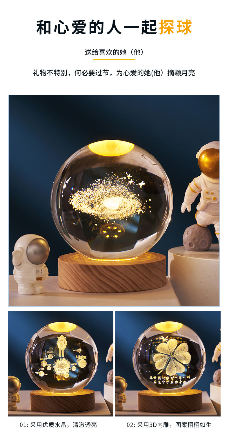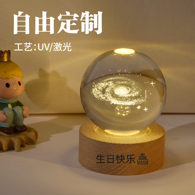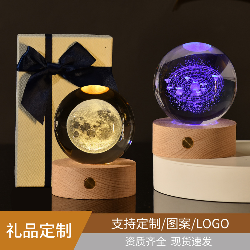 creative small gift crystal ball small night lamp with light-emitting base gift box 3d inner carving moon galaxy gift decoration
