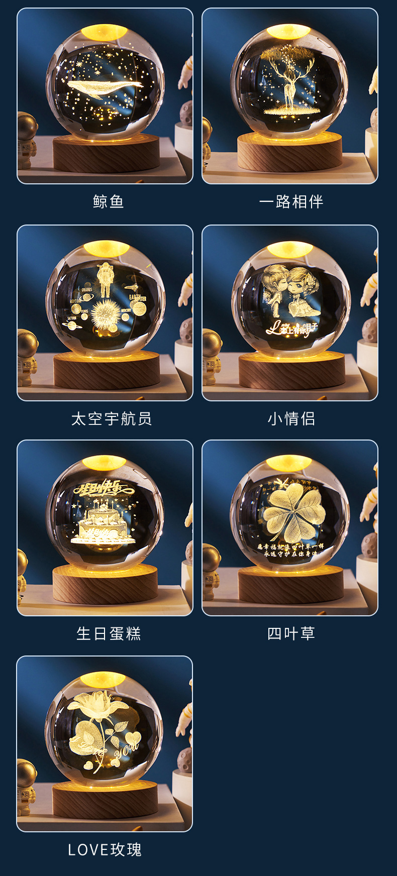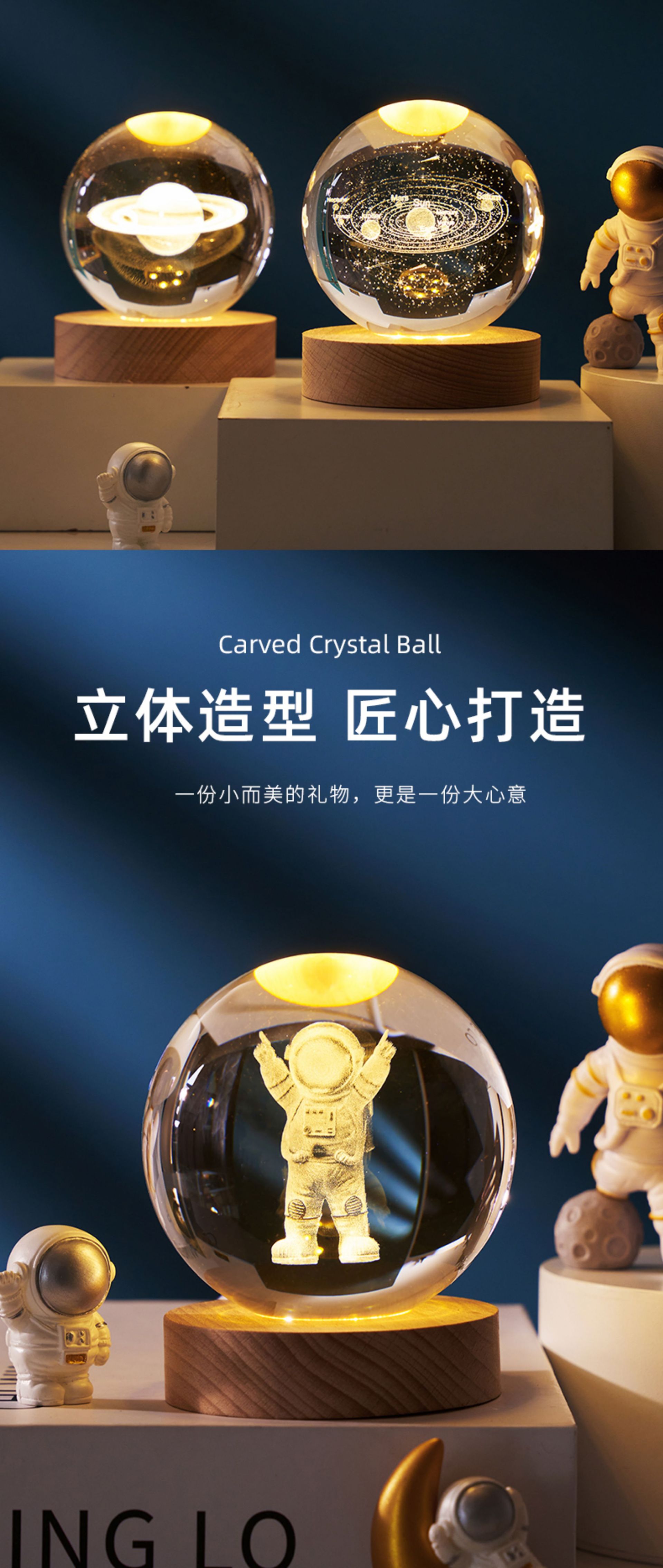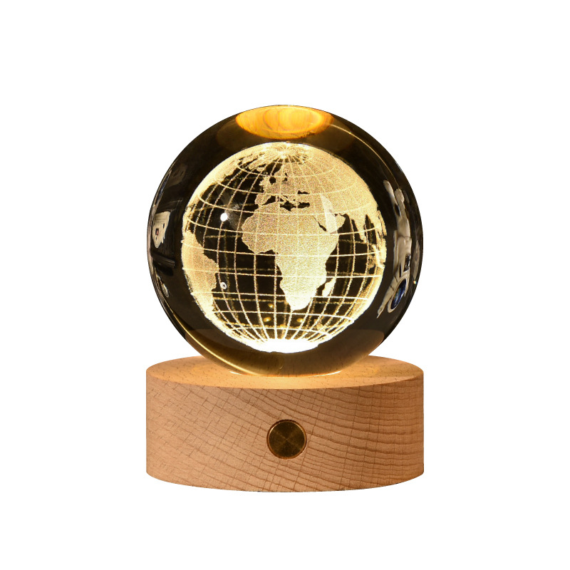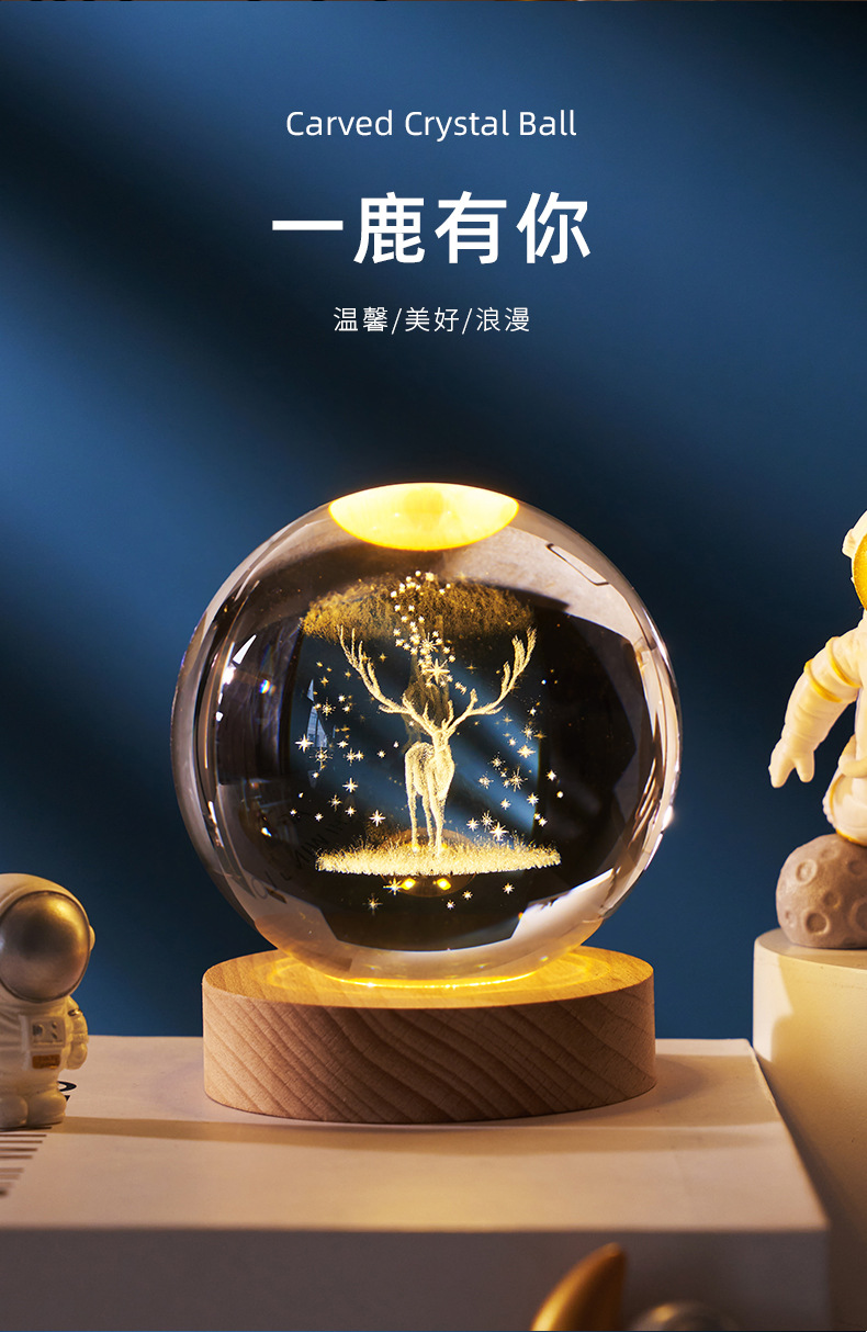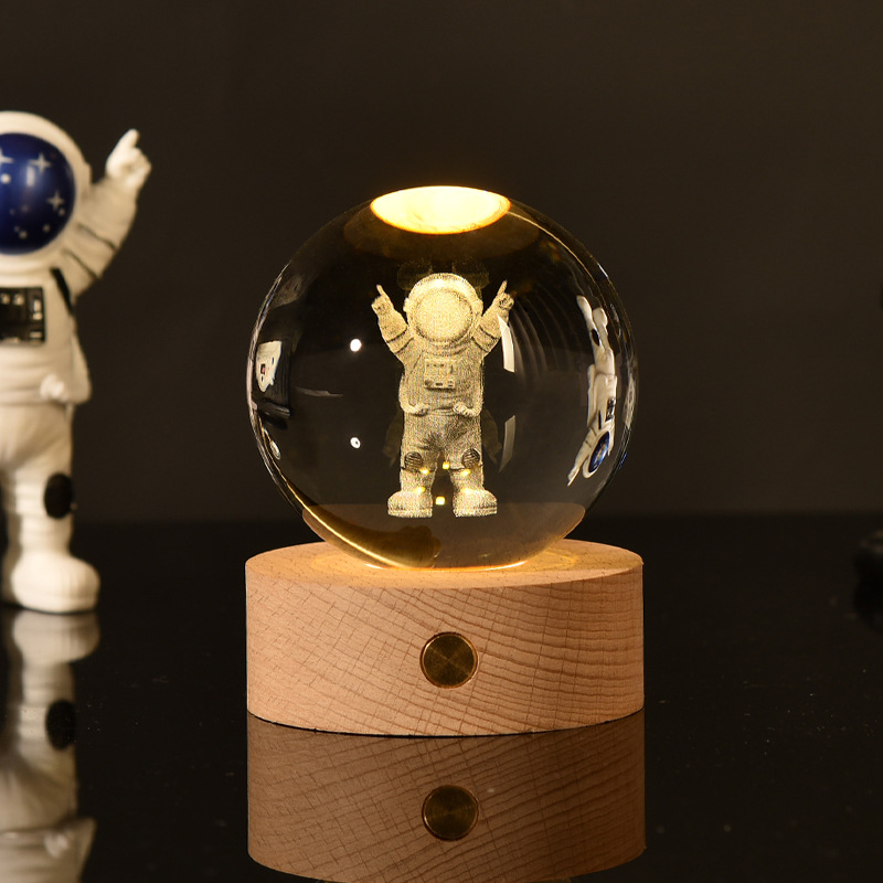 creative small gift crystal ball small night lamp with light-emitting base gift box 3d inner carving moon galaxy gift decoration