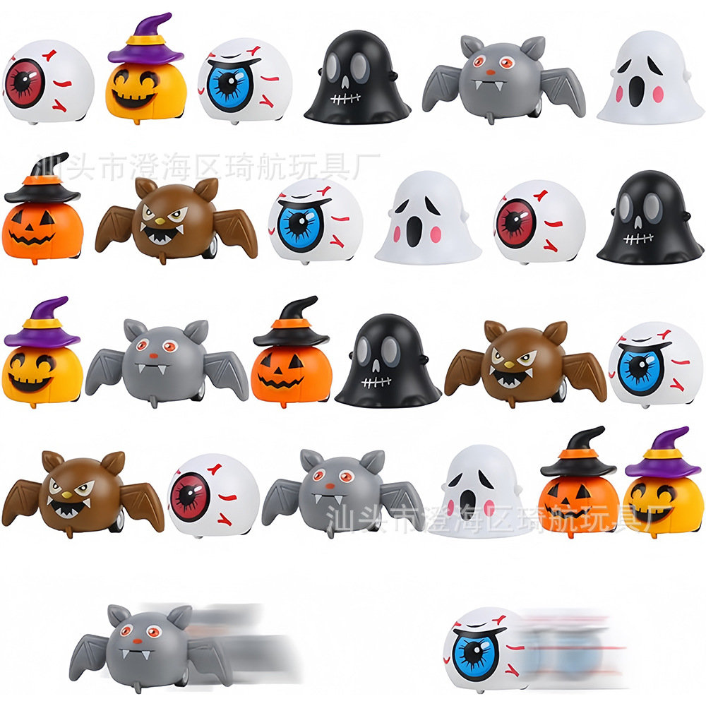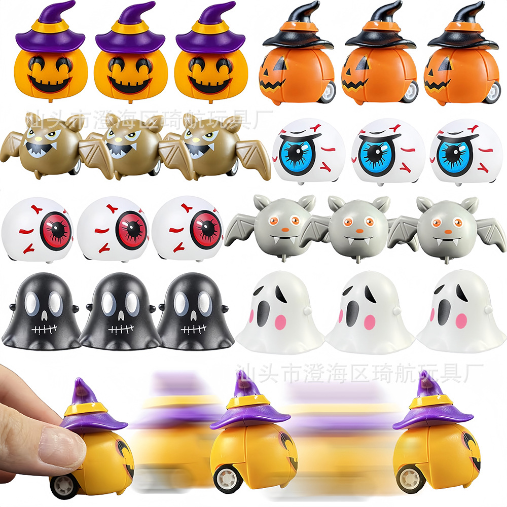 export hot sale wansheng pull back car ghost festival pumpkin bat ghost kid warrior toy funny party toy