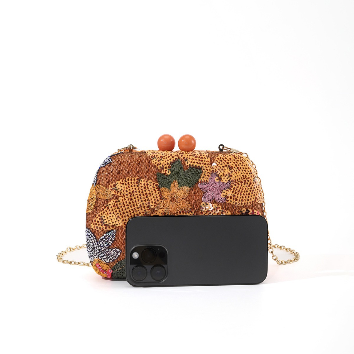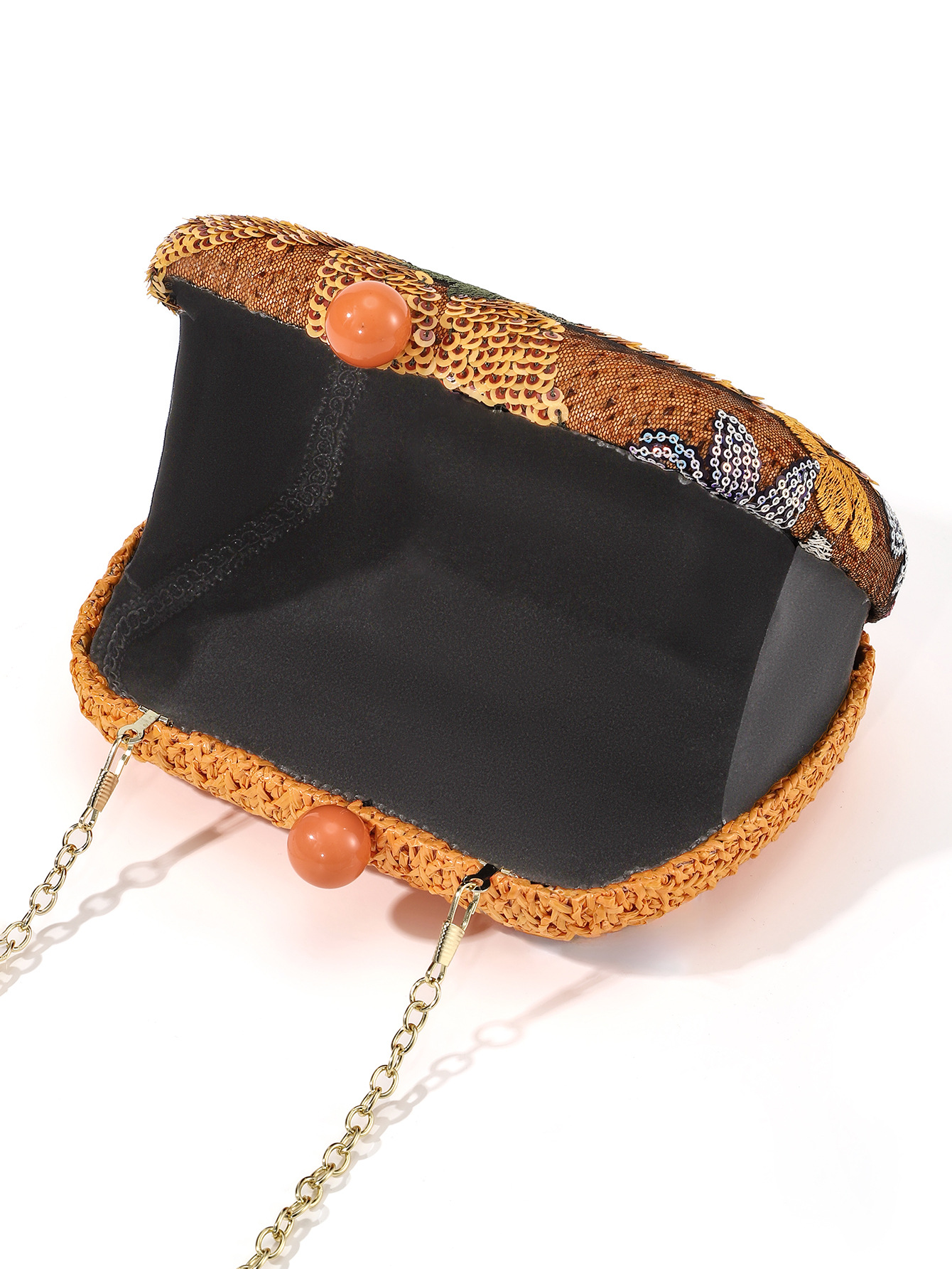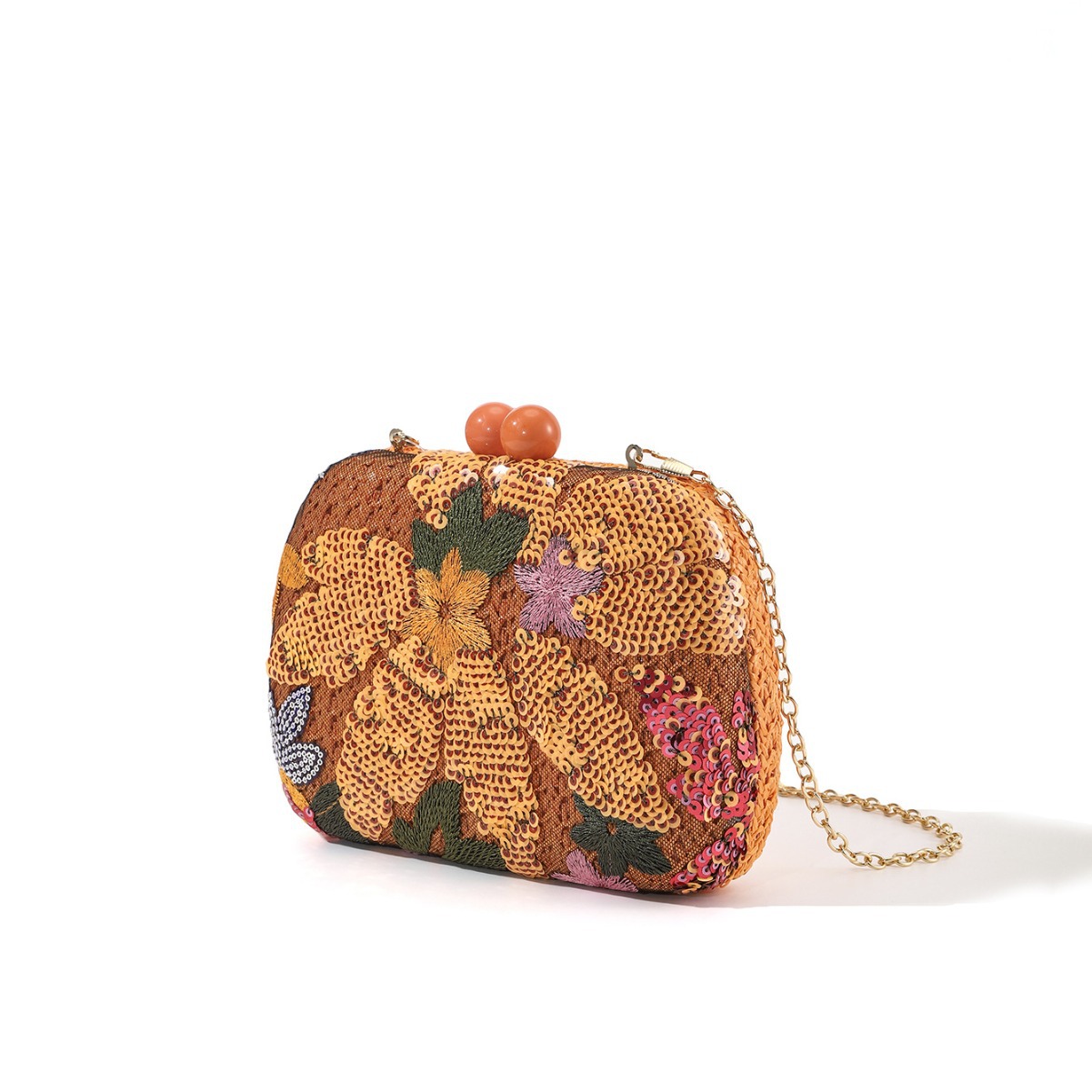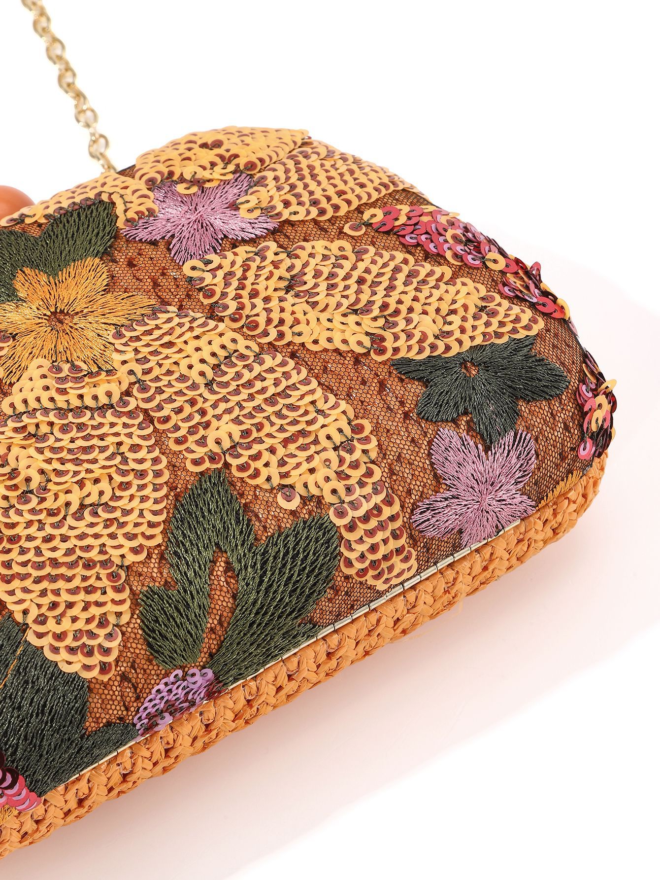 Cross-Border New Arrival European and American Summer Colorful Flowers Sequined Embroidery Papyrus Woven Clutch Chain Party Holiday Dinner Bag