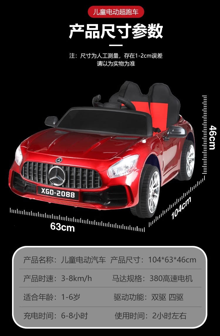 red stoving varnish + four-wheel drive + remote control + swing + music early education + leather seat +12v explosion-proof large battery