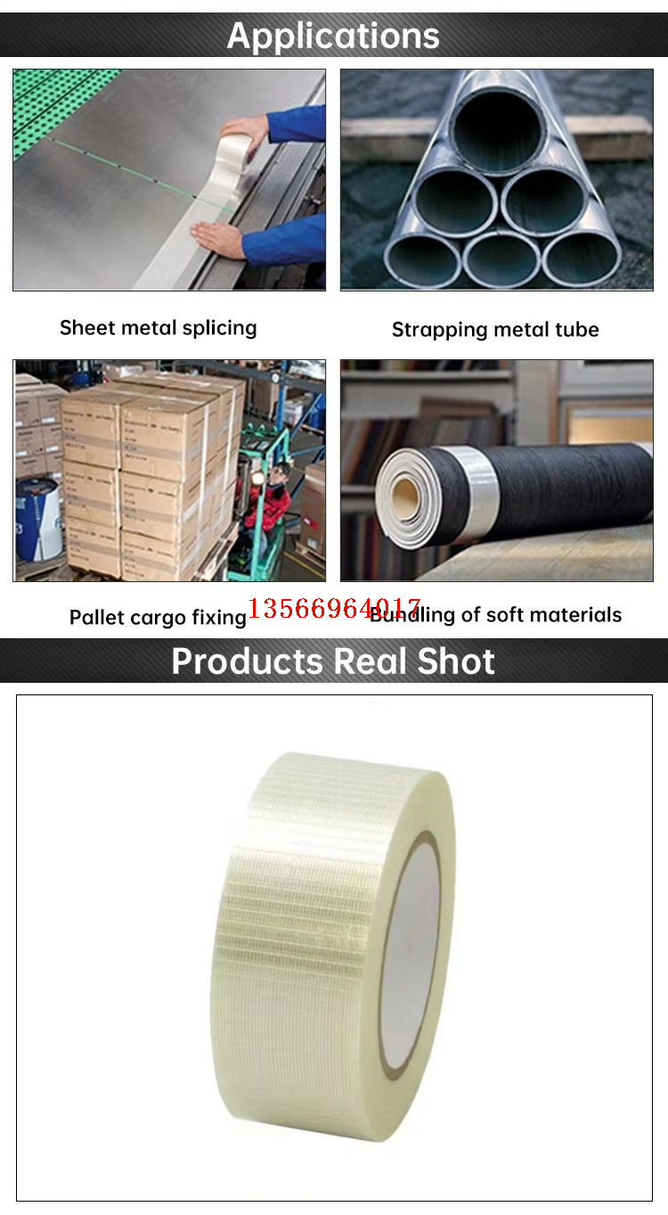 About Product:Cross Weave Fiber Self Heavy Duty Synthetic Rubber Fiberglass Bi-Directional Filament Tape