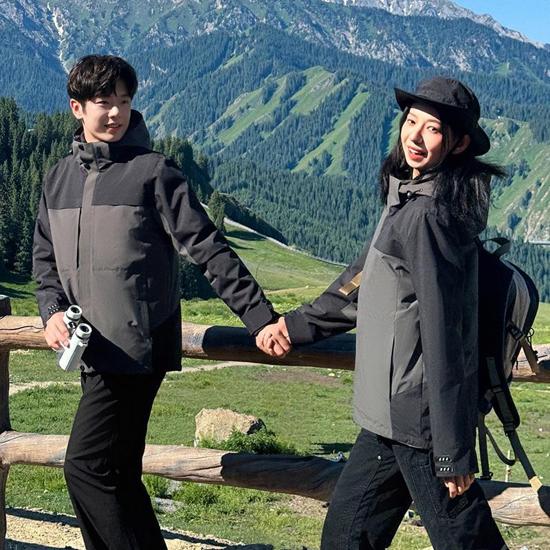 mountain casual shell jacket silver fox velvet three-in-one high elastic zipper hoodie outdoor set windproof rain group building printing