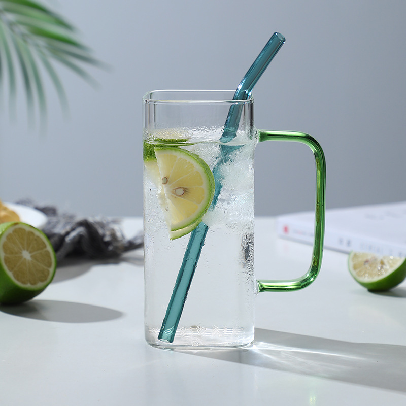 square glass cup borosilicate heat-resistance glass drink cup breakfast cup cap with drinking straw