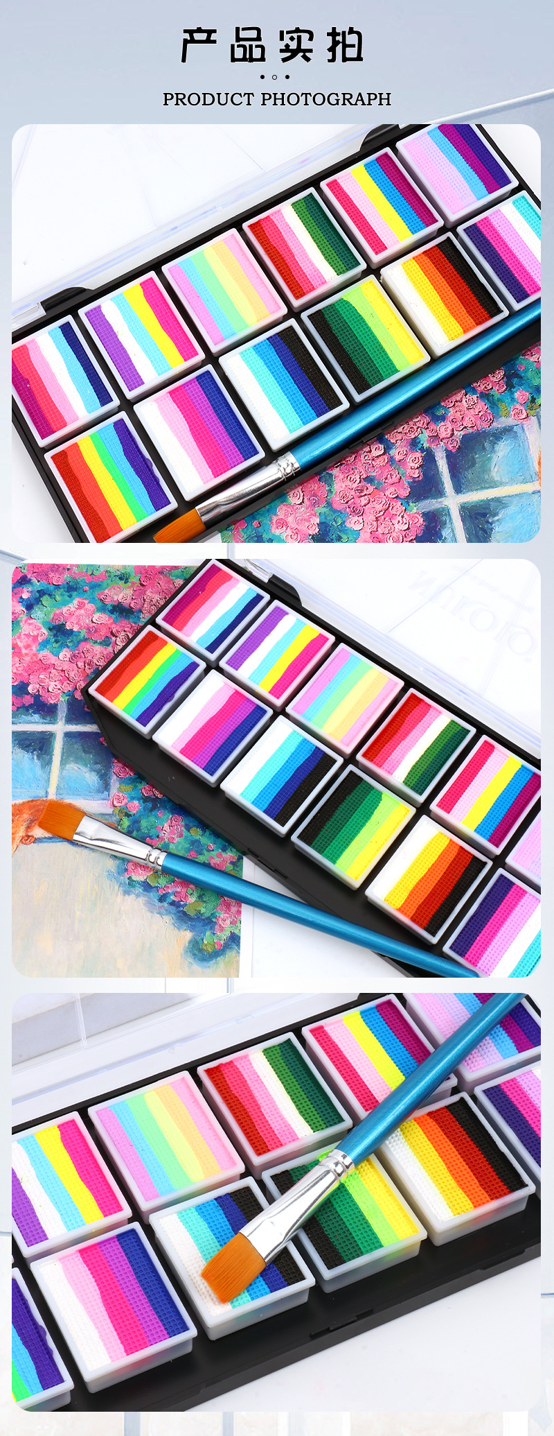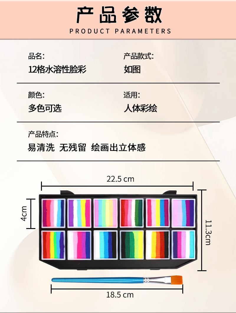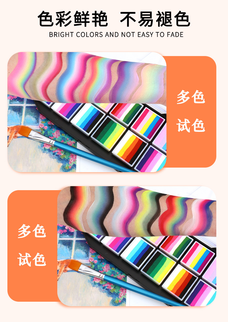 12 Grids Multi-Color Water Soluble Face Paint Suit Body Paint Pigment Children's Facial Painting Stage Makeup Opera Face Paint 中文版