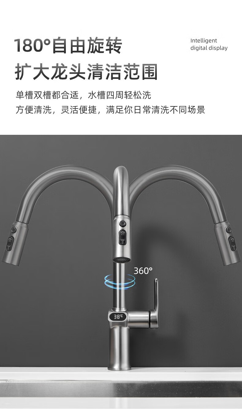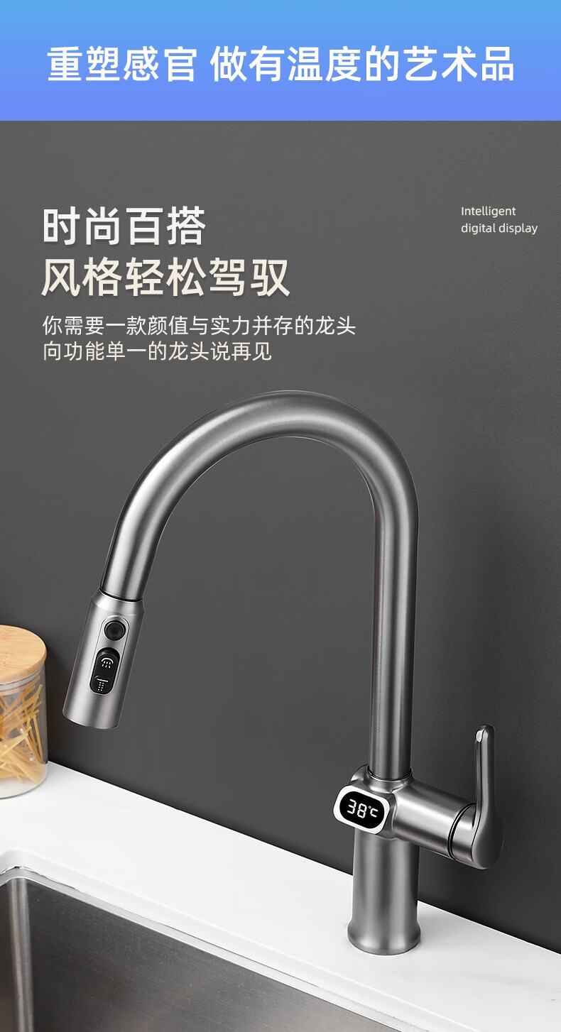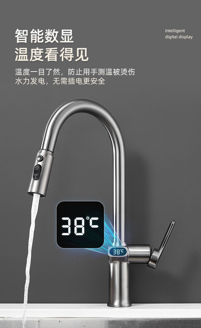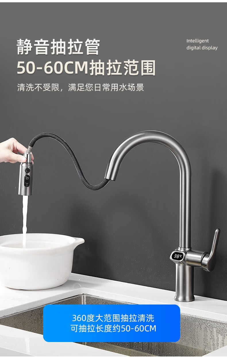 bright silver/copper digital display pullout faucet