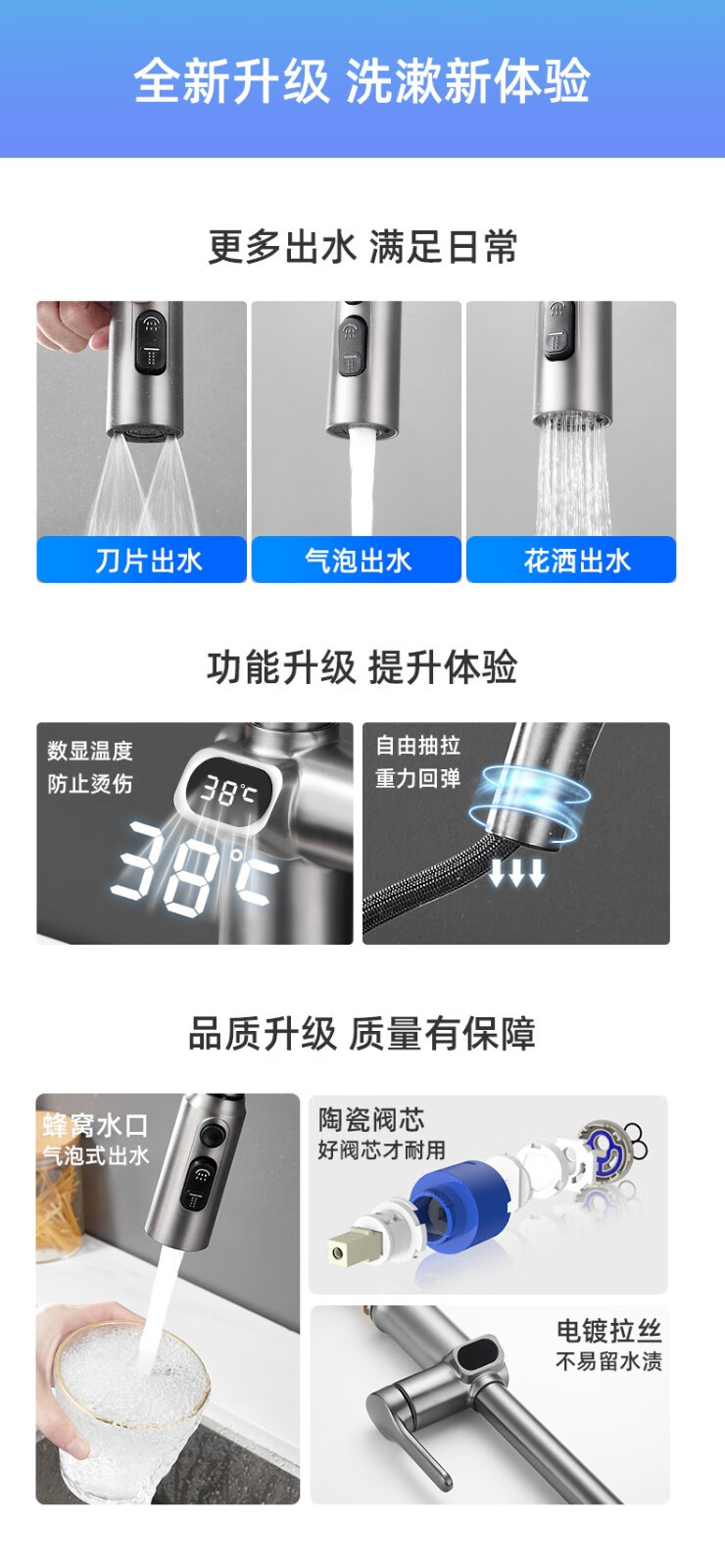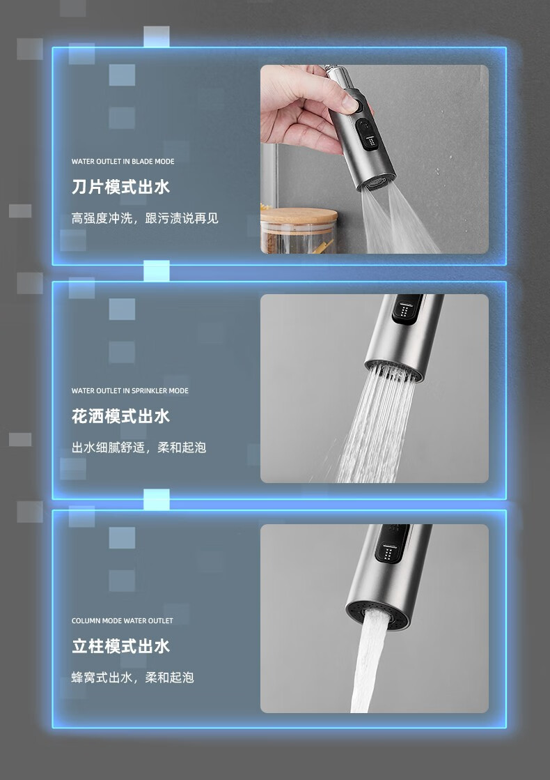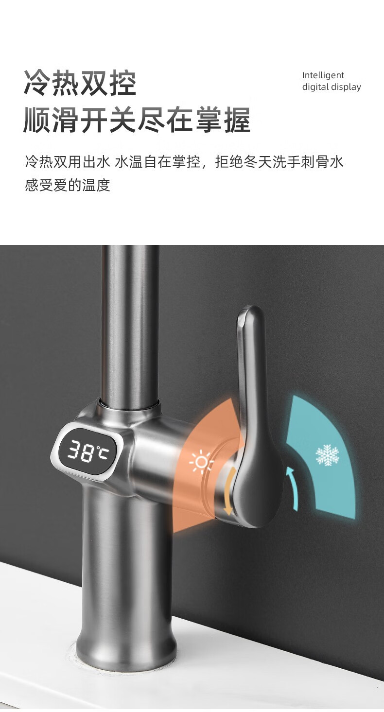 bright silver/copper digital display pullout faucet