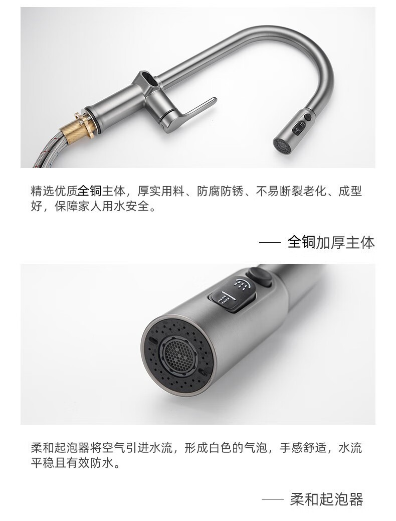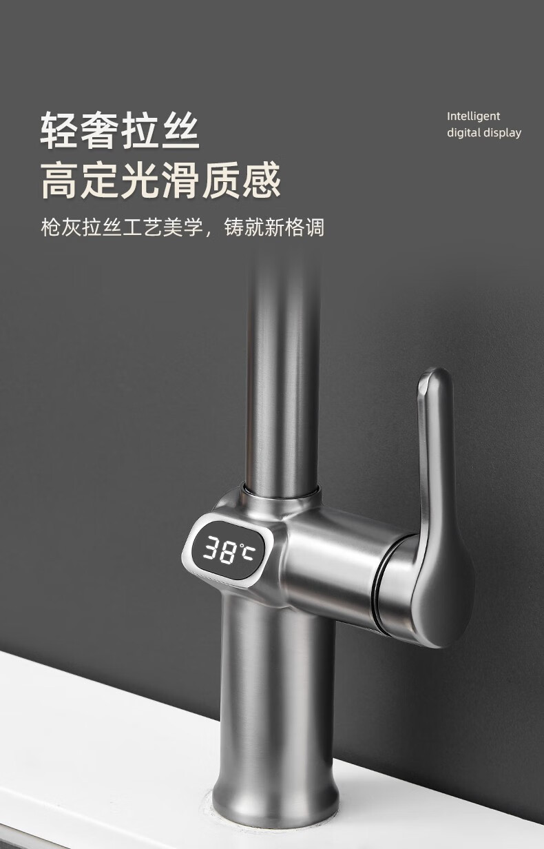 gun gray/copper digital display pullout faucet
