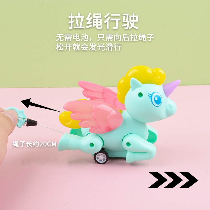 Rope-pulling light-up toy, no batteries required. When you pull the rope back and release it, the toy will run and light up. Direct manufacturer sales, affordable prices.