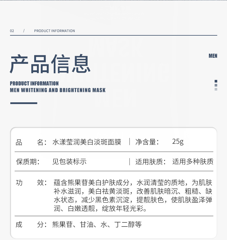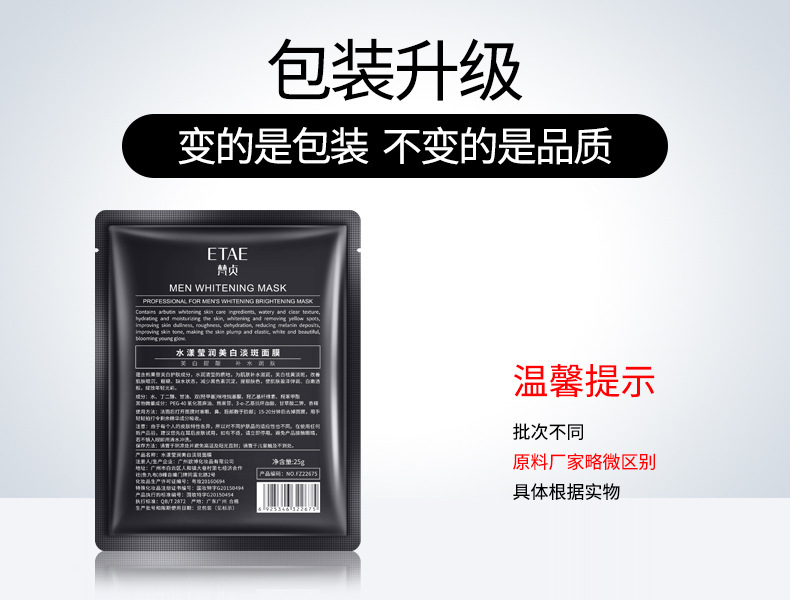 fanzhen men's whitening and freckle removing facial mask hydrating and moisturizing improve dry and light spots brightening and moisturizing facial mask wholesale