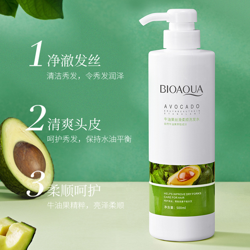 Bioaqua Avocado Silky Smooth Shampoo Moisture Replenishment Soft Silky Clean Refreshing Shampoo Direct Wholesale