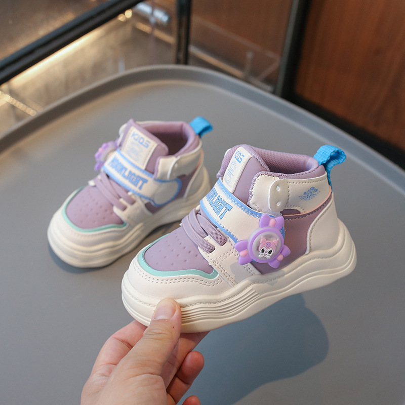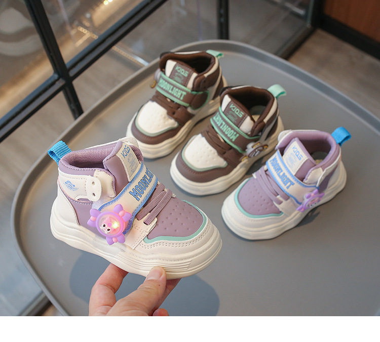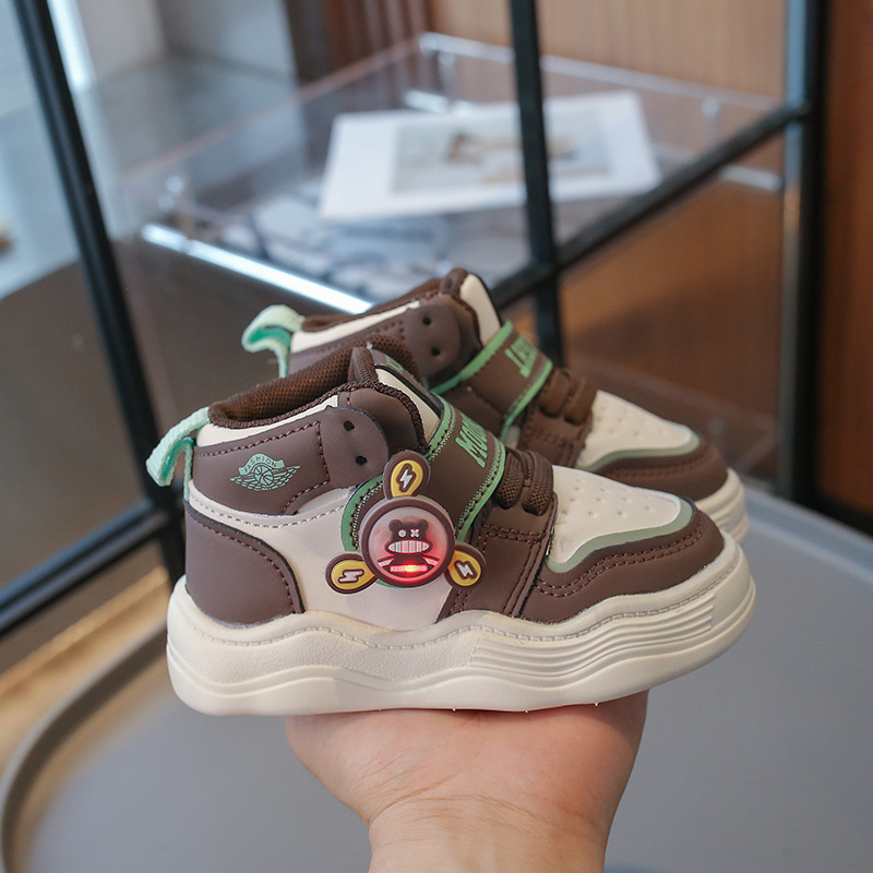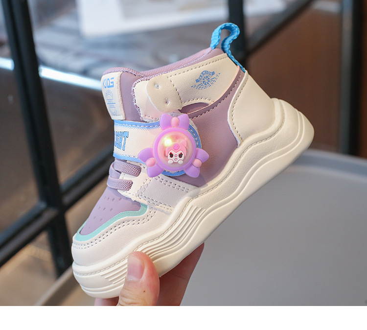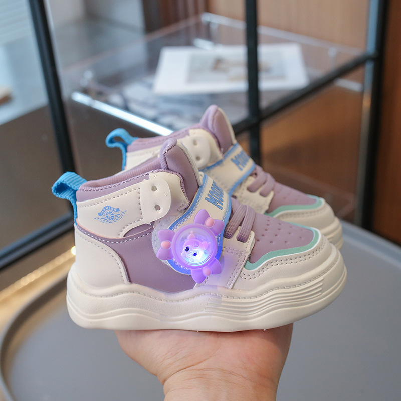 2024 autumn new high top sneakers flashing light rotating windmill cute children's fun children's casual shoes baby boy and baby girl
