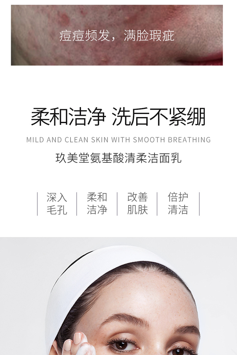Qimeitang Amino Acid Facial Cleanser Gentle Cleansing Gentle Moisturizing Small White Tube Facial Cleanser Wholesale 中文版
