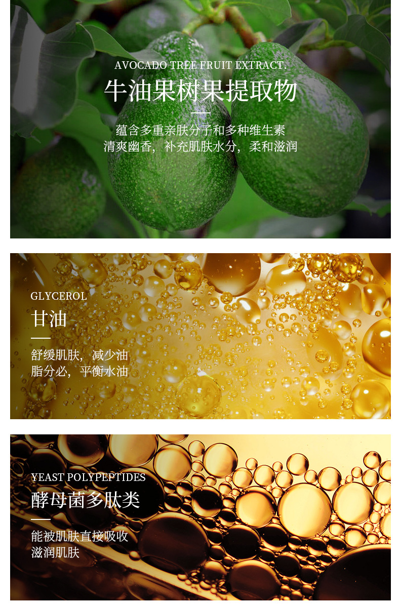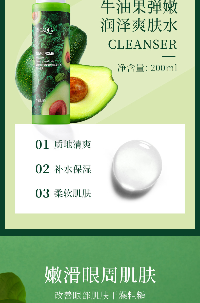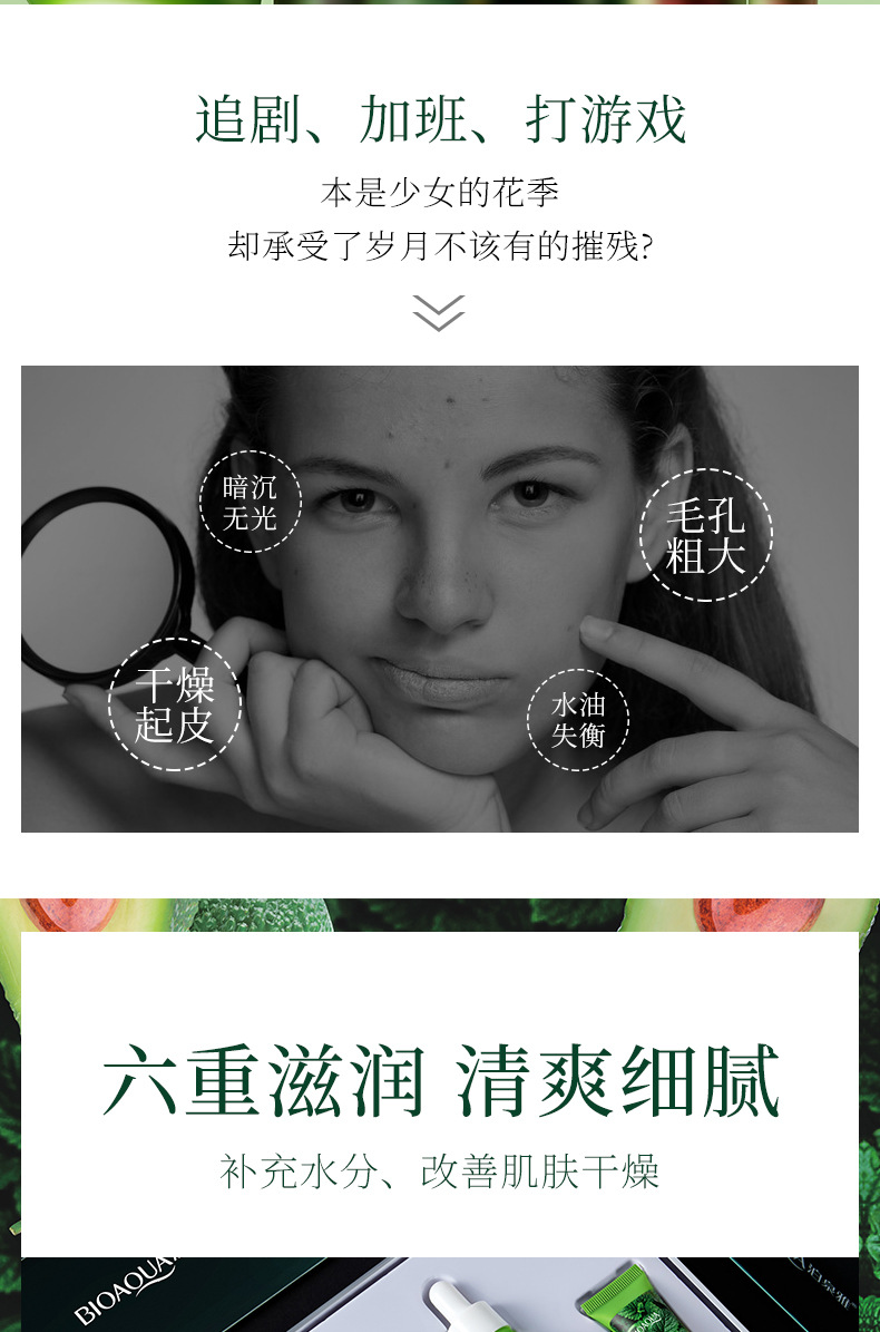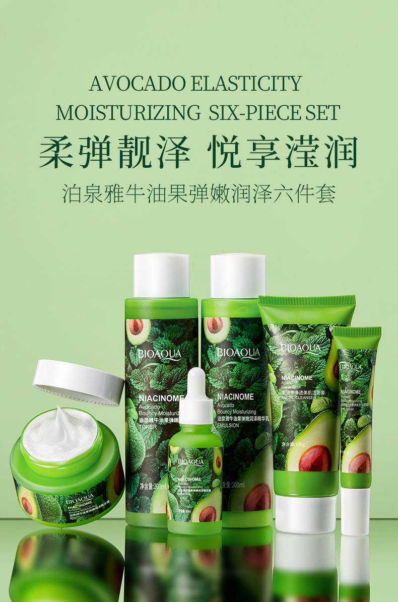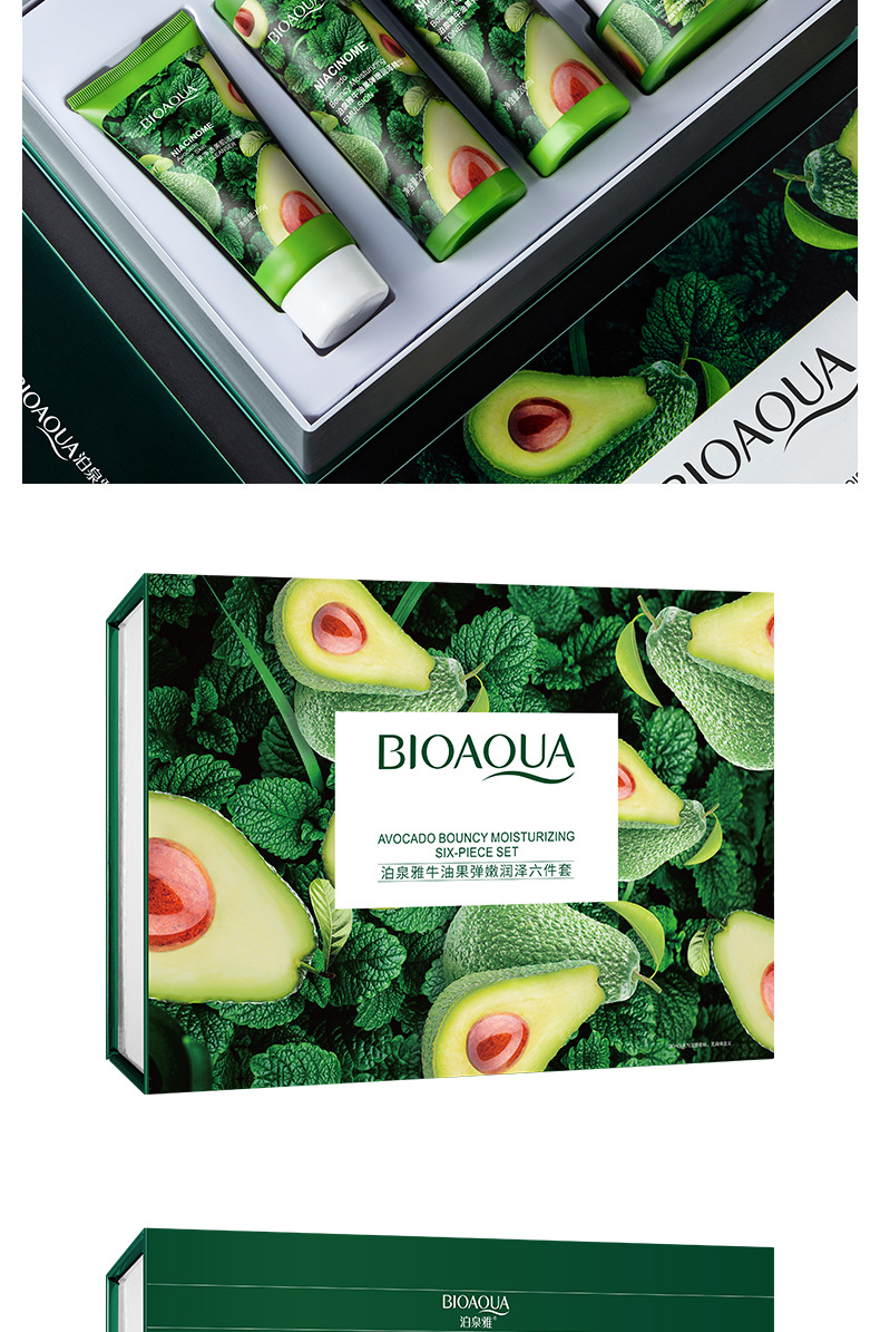 bioaqua avocado elastic moisturizing and moisturizing suit hydrating, refreshing and fading dark circles skin care products cosmetics box 中文版