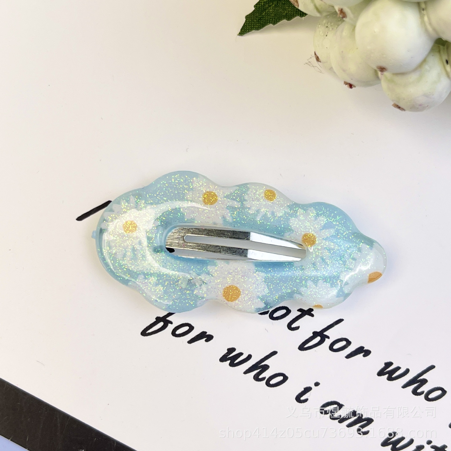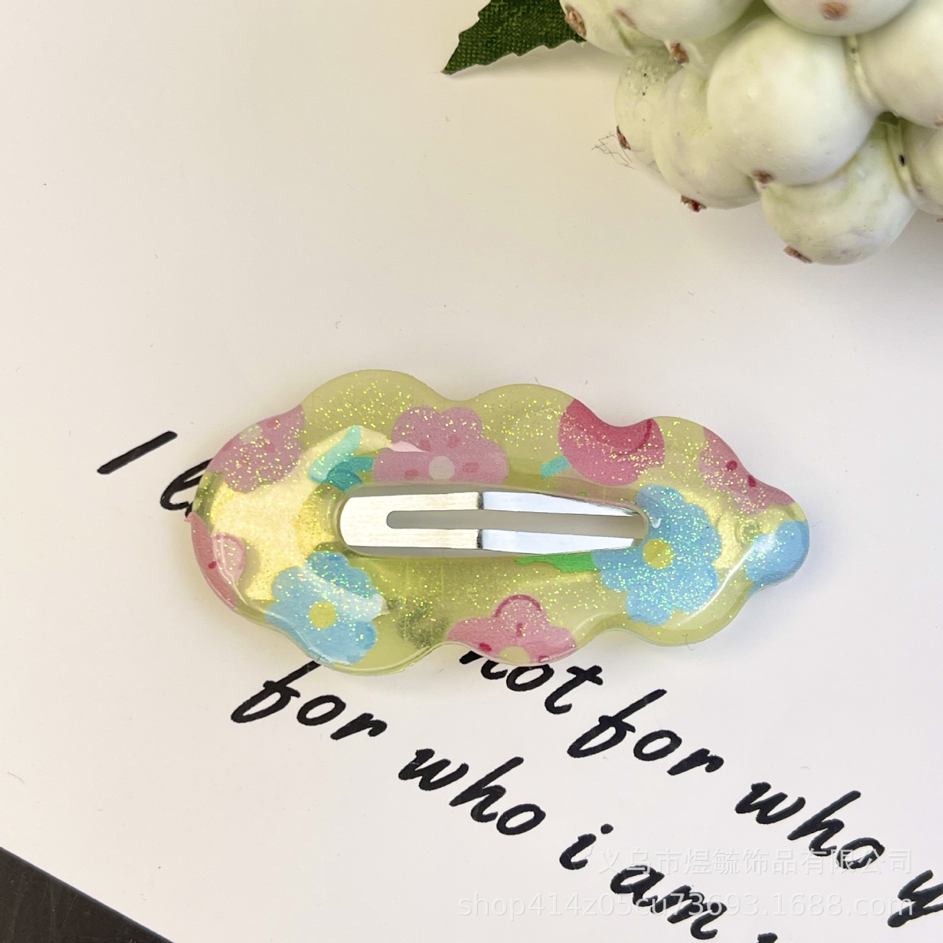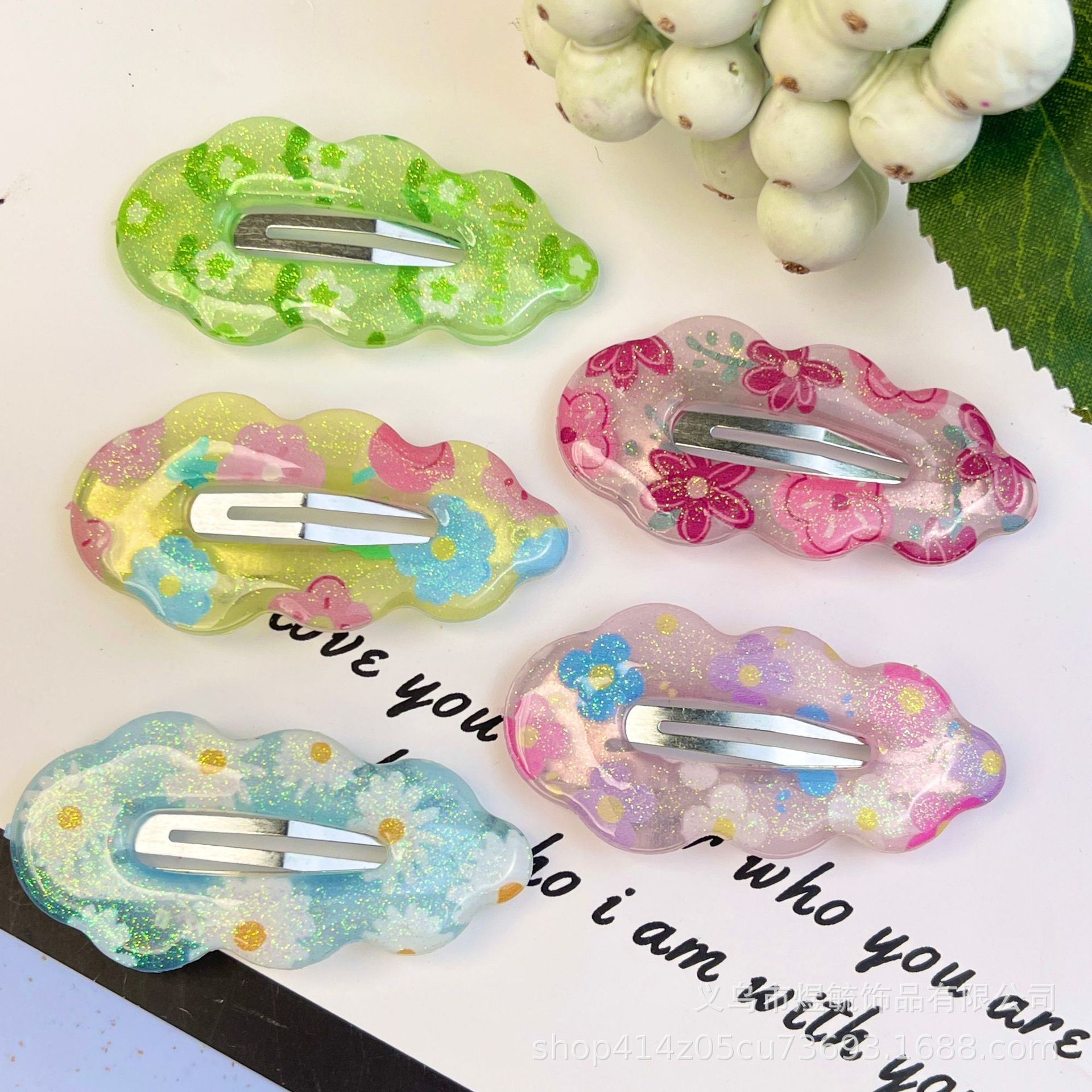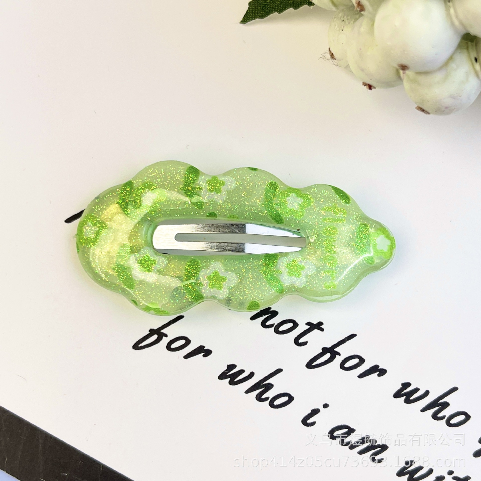 green flower 5.5cm dripping oil printing cloud clip
