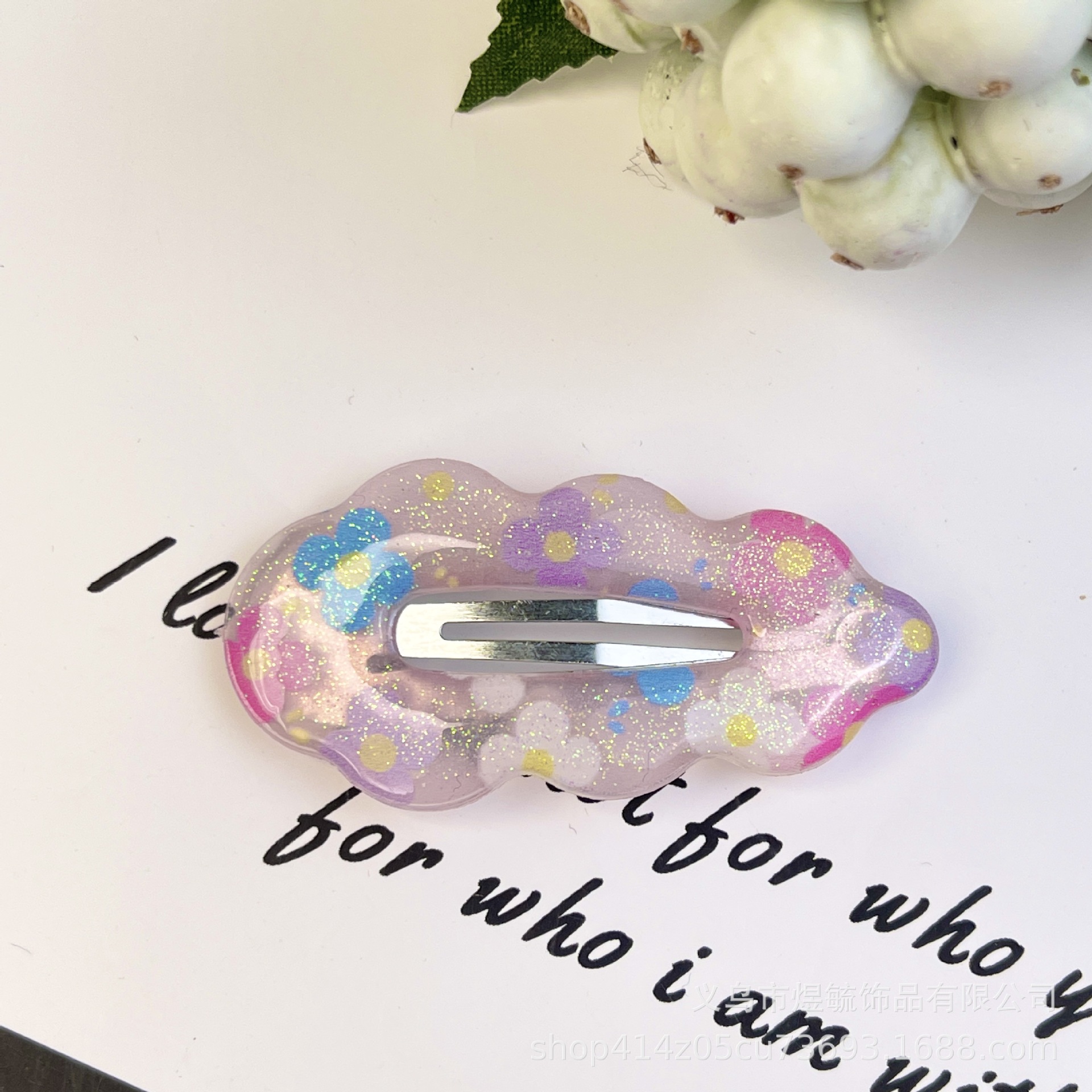 purple flower 5.5cm dripping oil printing cloud clip