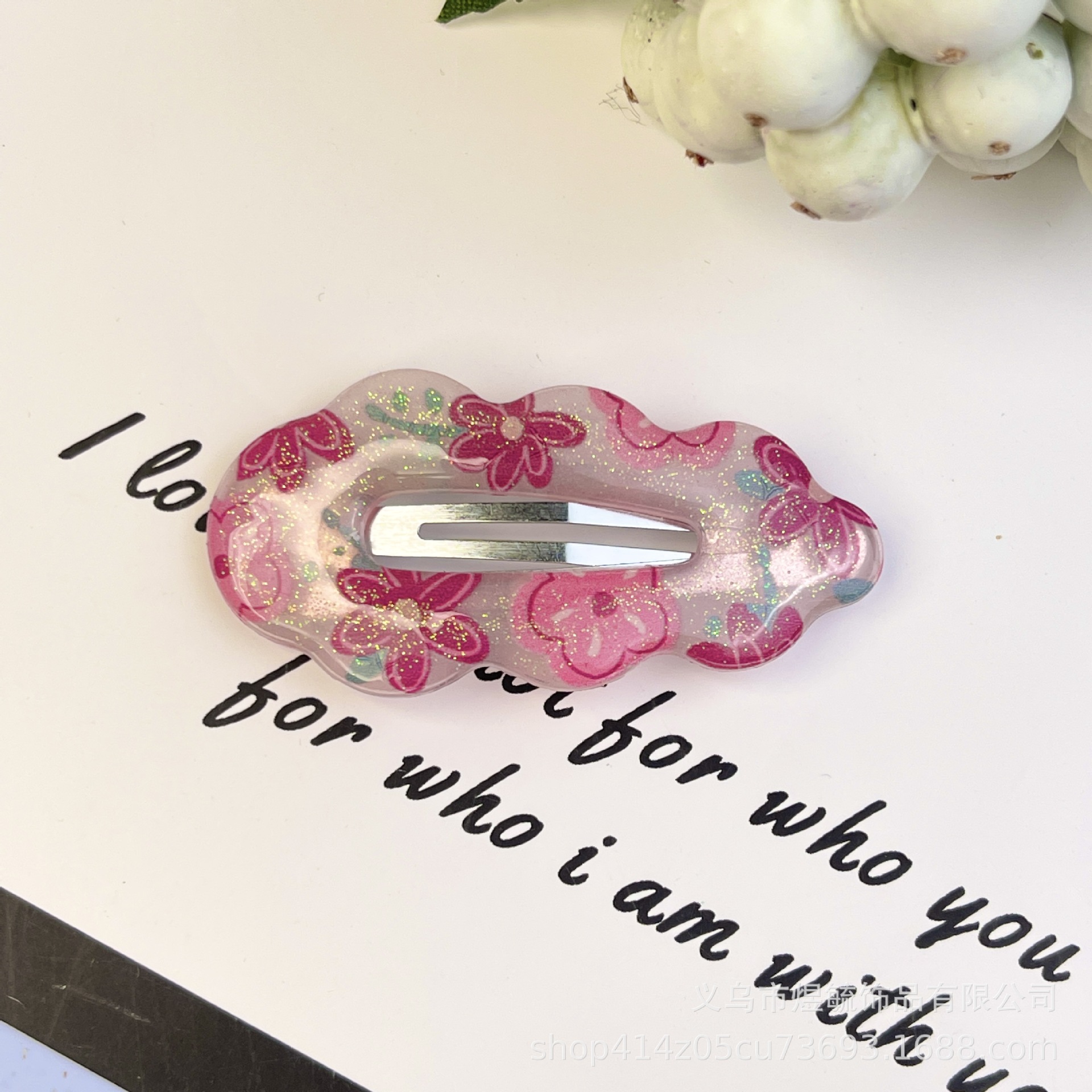 pink flower 5.5cm oil dripping printing cloud clip