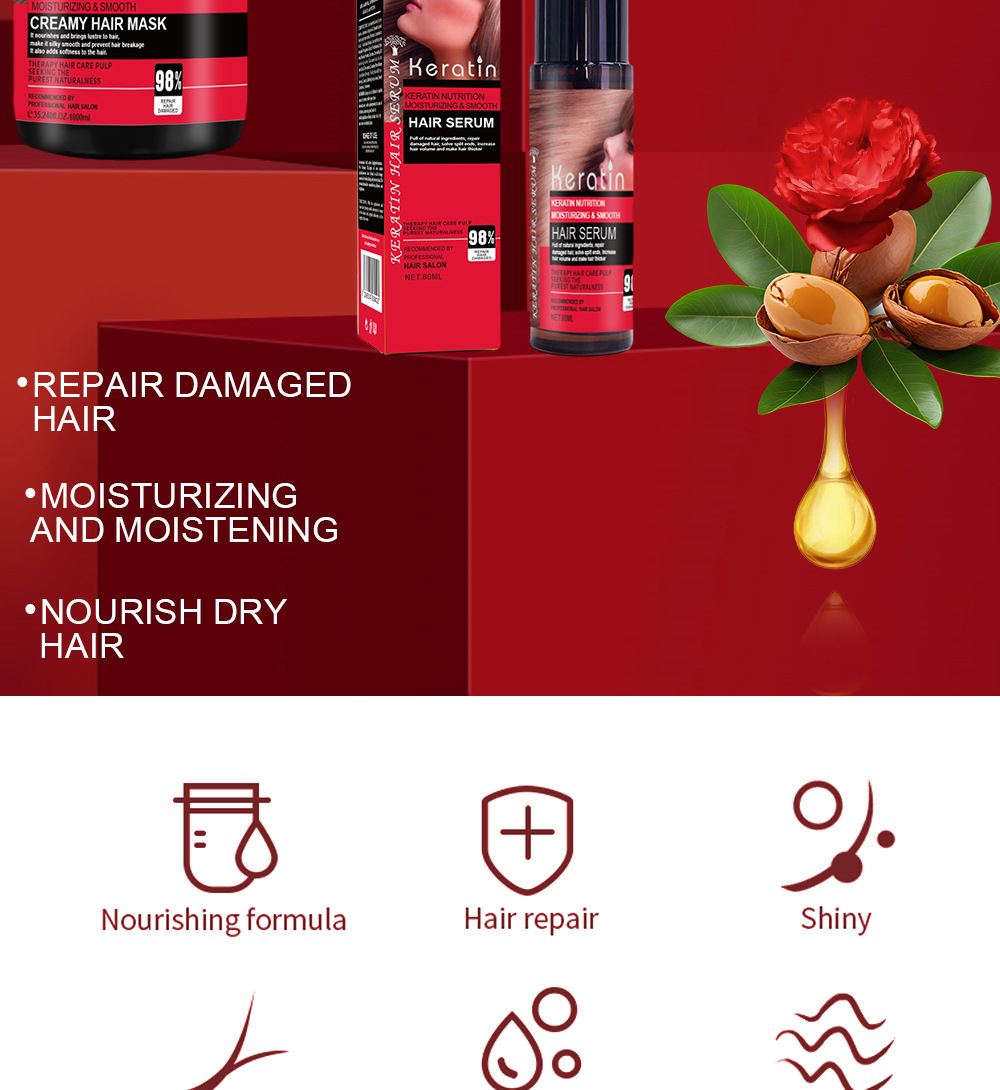 cross-border wholesale keratin shampoo argan oil repair dyeing and perming anti-dandruff wash nursing suite keratin shampoo 中文版