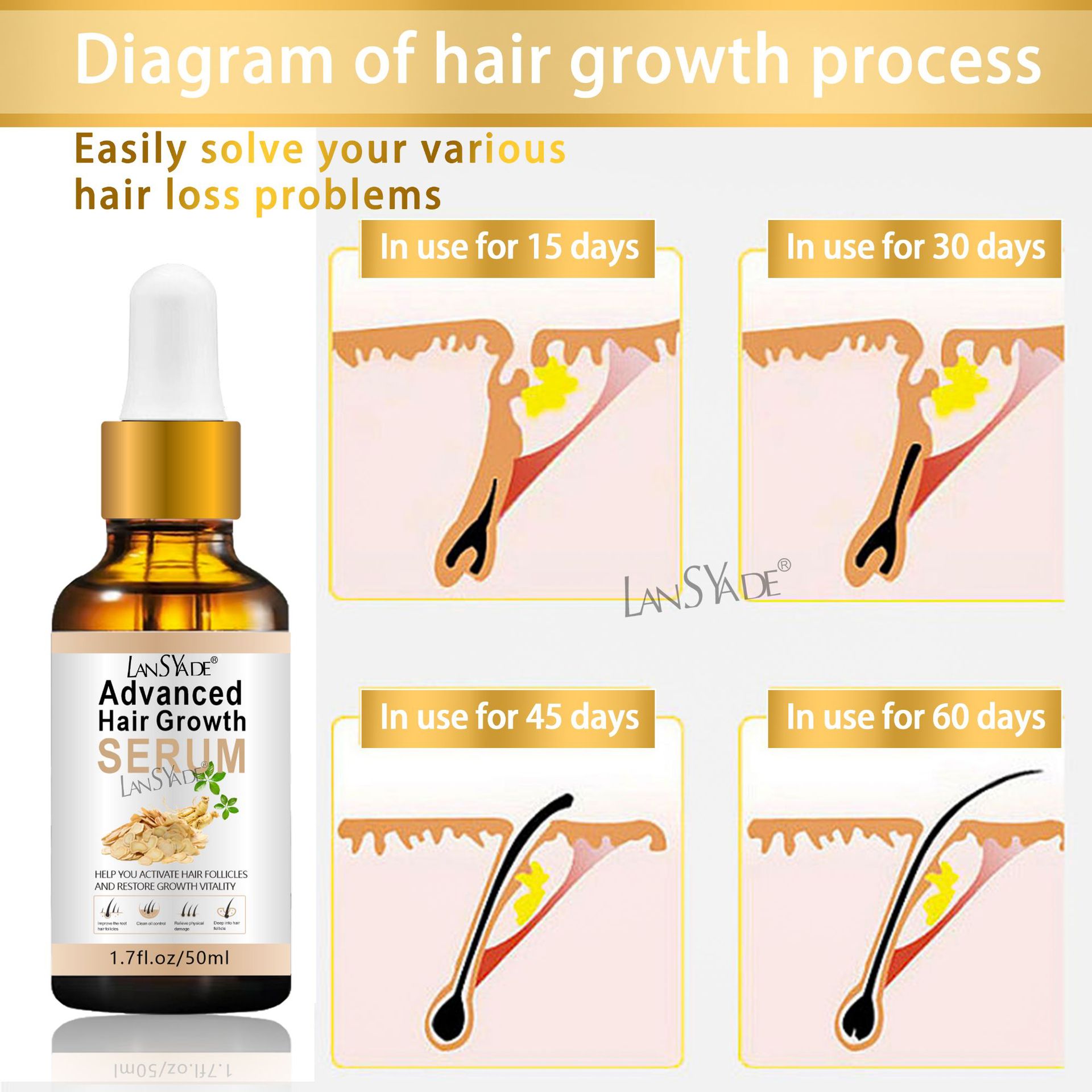 Product Name: 50ml Ginseng Hair Care Oil Brand: LANSYADE