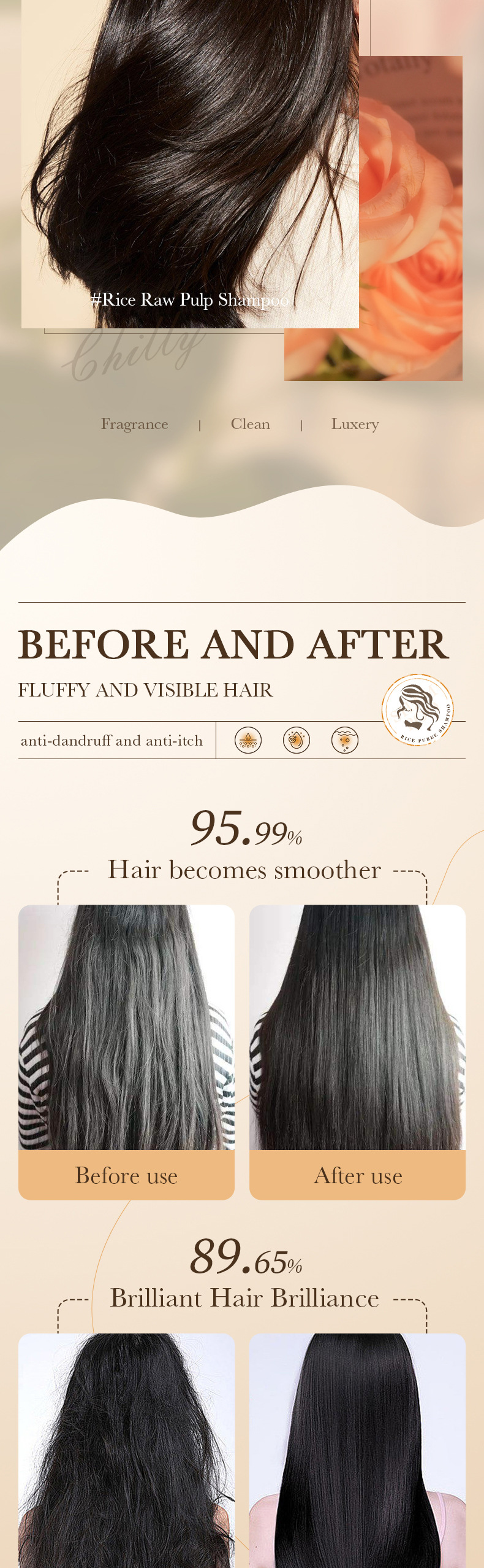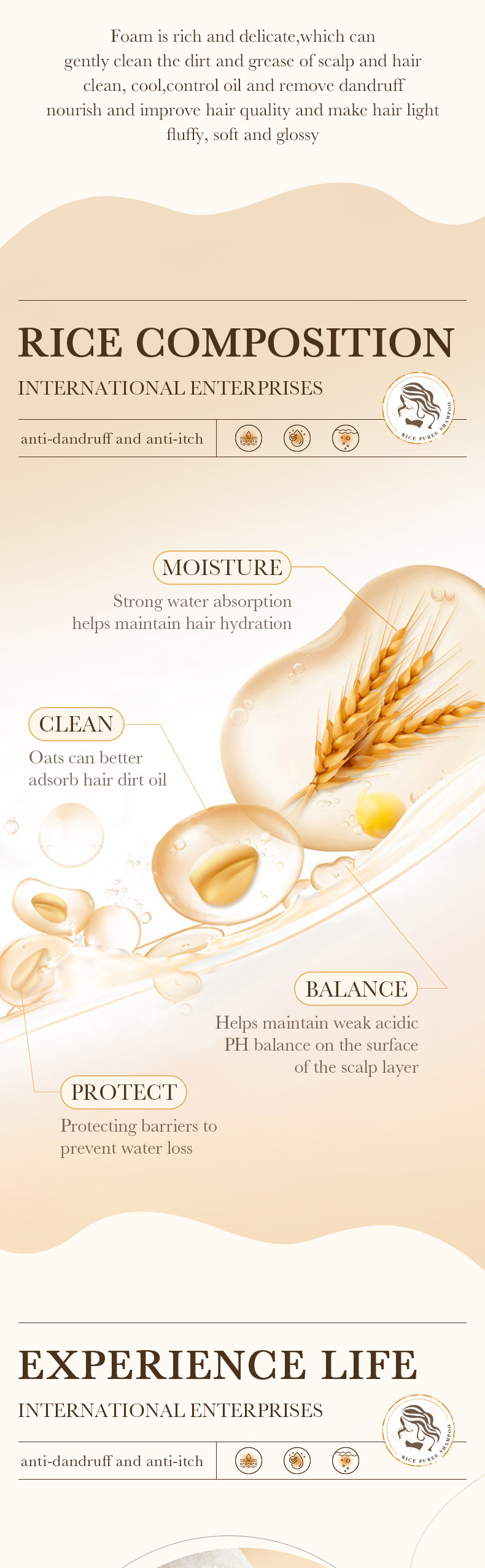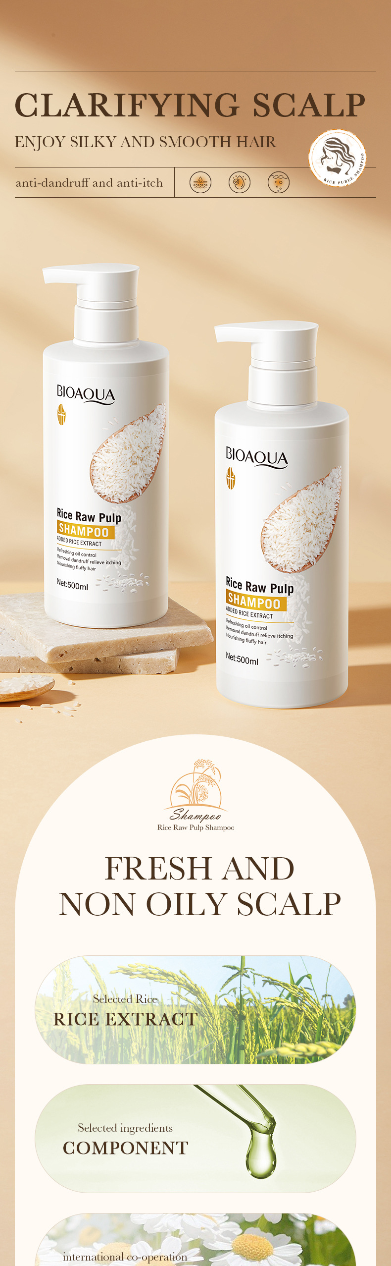 english bioaoua rice puree shampoo anti-dandruff oil control fluffy fragrance shampoo foreign trade cross-border 中文版
