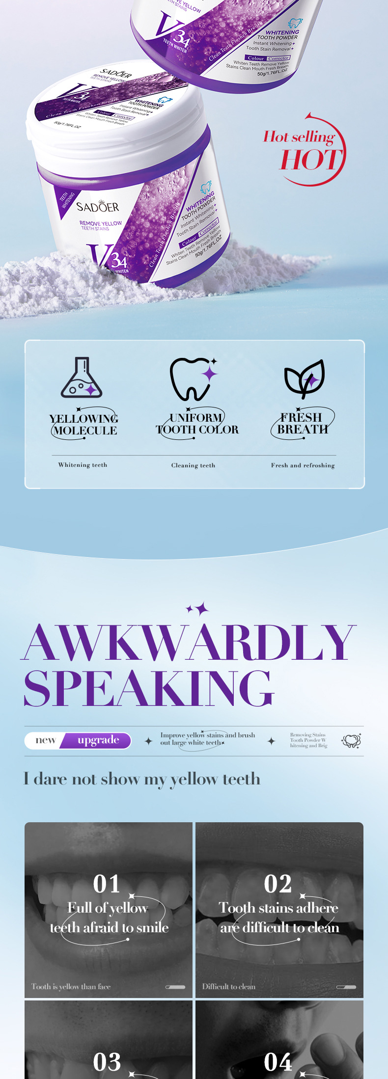 Full English Toothpowder Sadoerv34 Fresh Yellow Removing Stain Cleaning Toothpowder Cross-Border Foreign Trade Factory Direct Sales