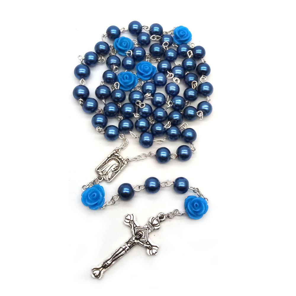 Product Material: Resin Rose, Glass Pearl, Alloy Cross Triangle Pendant
