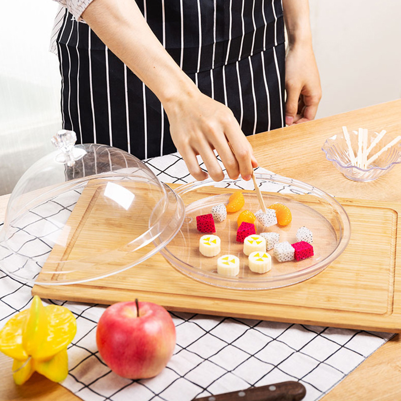 shopping mall fruit sampling plate with cover set pc food display plate transparent plastic fruit plate dustproof health hygiene