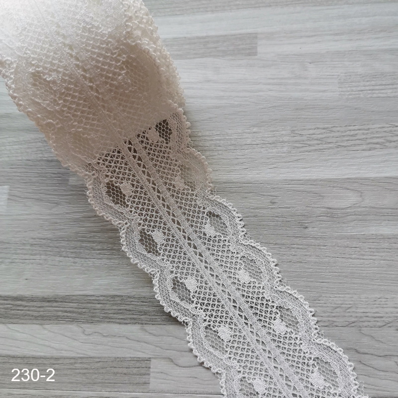 这款是无弹花边,双边=150Y,宽约4.2cm.单边=300Y,宽约2cm.