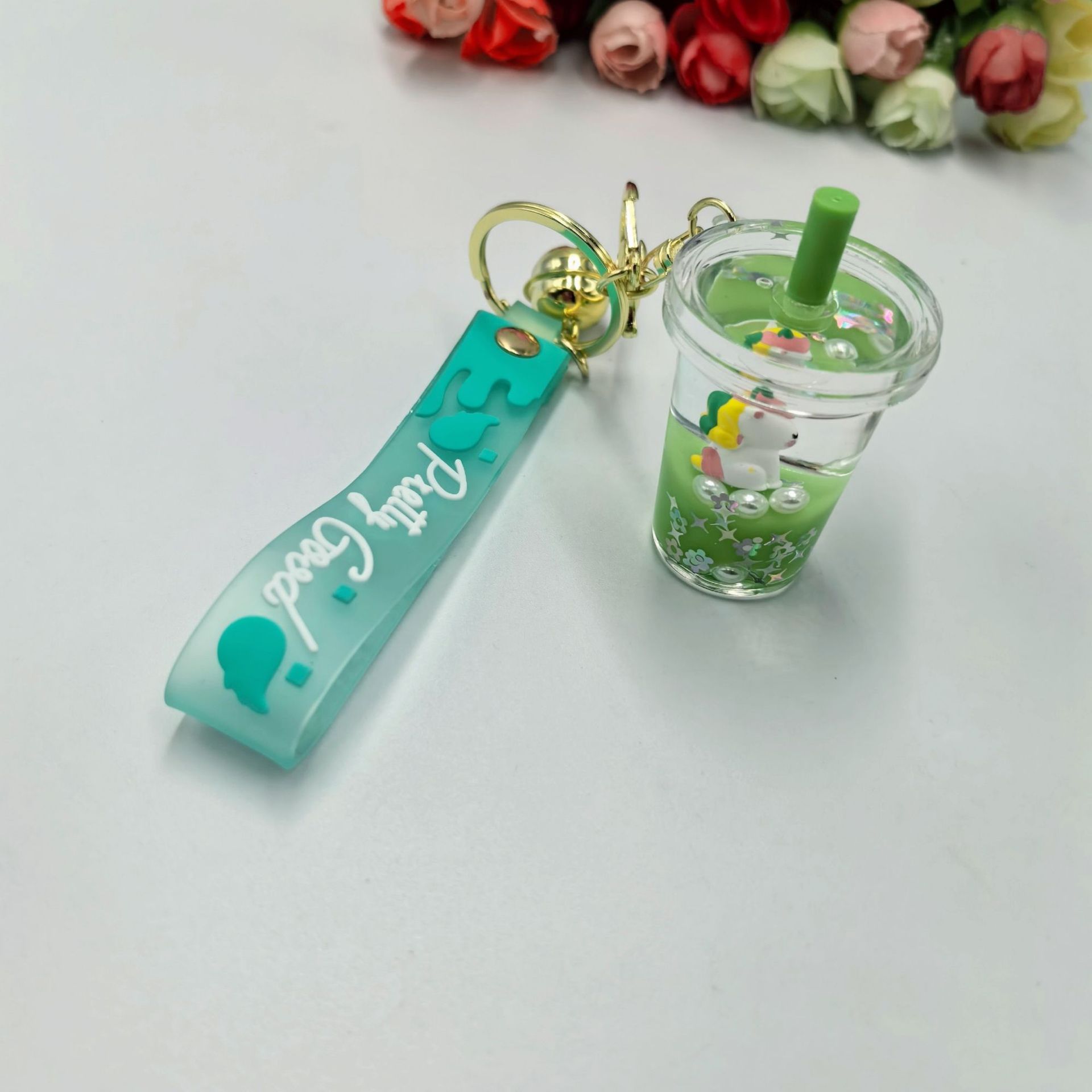 产品名称:入油漂浮独角兽流沙奶茶杯钥匙扣挂件