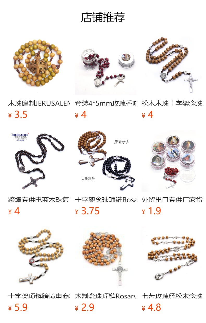 Rope-shaped pine wood prayer beads crucifix necklace