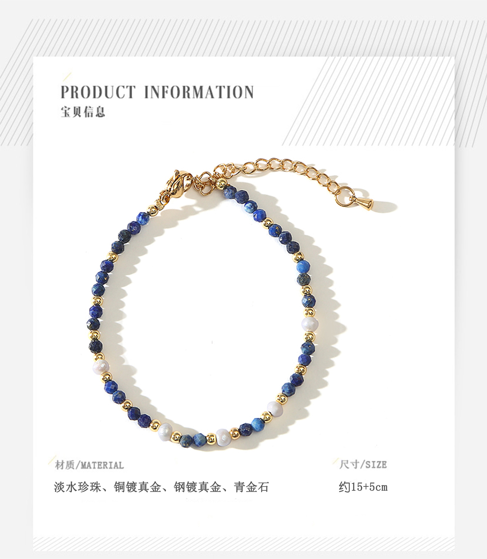 cut lapis lazuli pearl bracelet