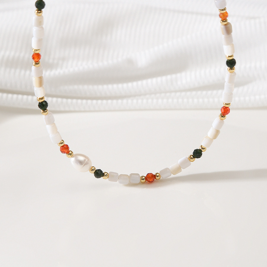 shell color zirconium pearl necklace