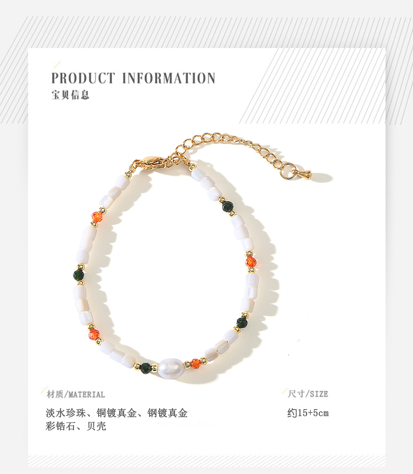shell color zirconium pearl bracelet