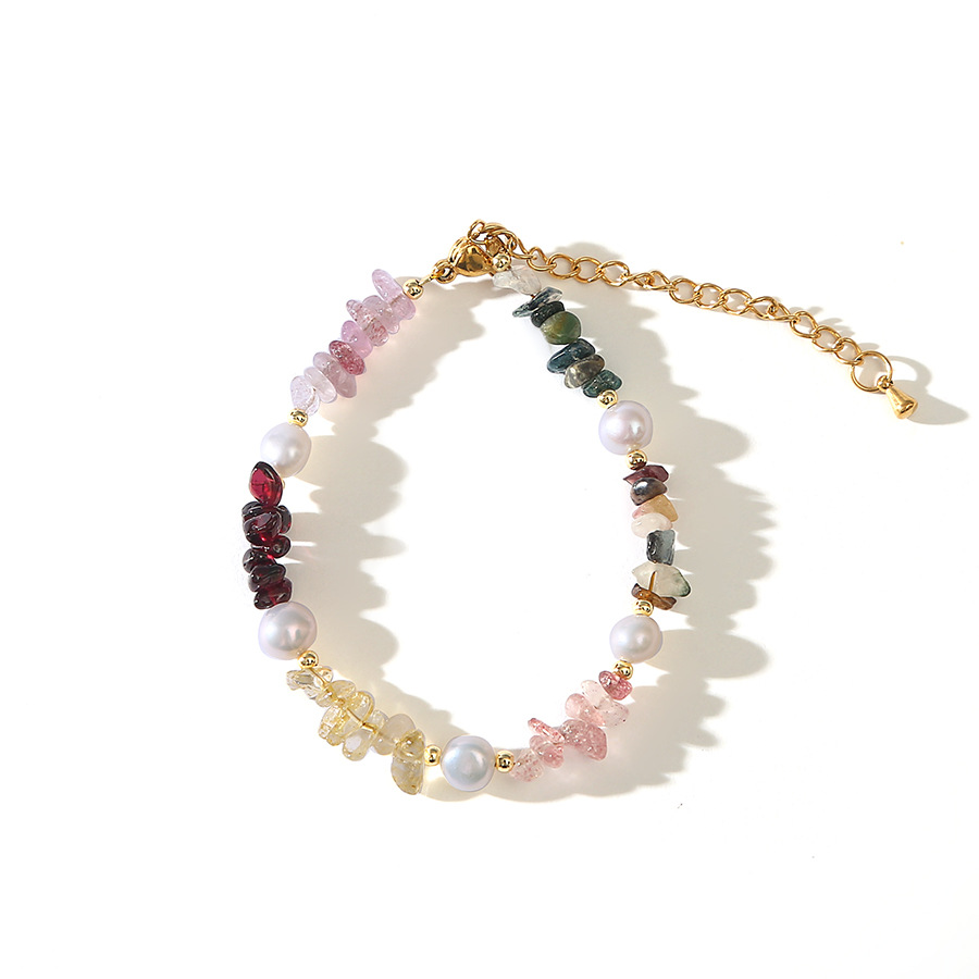 strawberry quartz citrine tourmaline garnet green phantom quartz gravel pearl bracelet