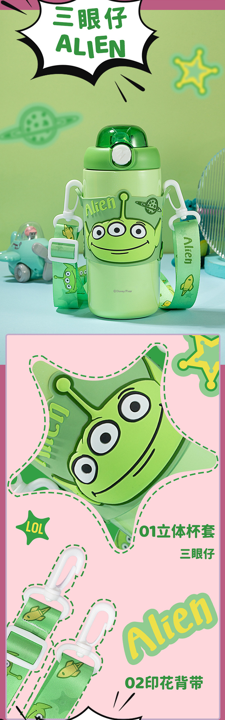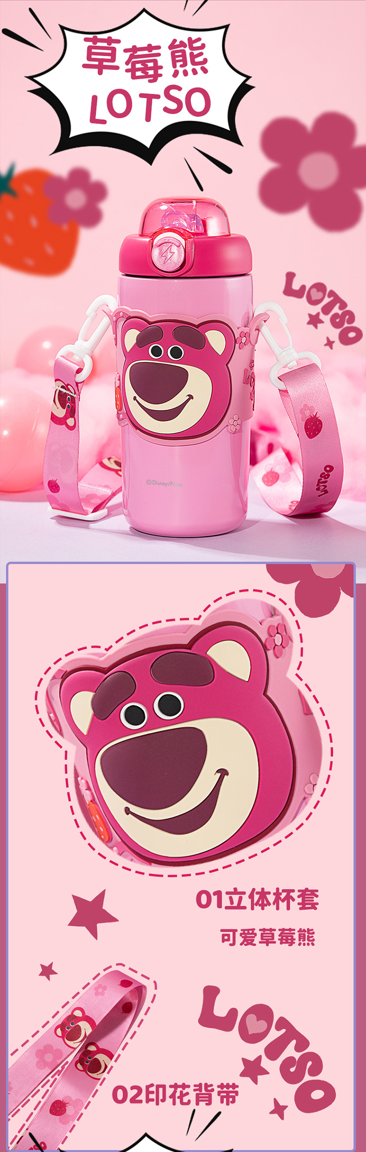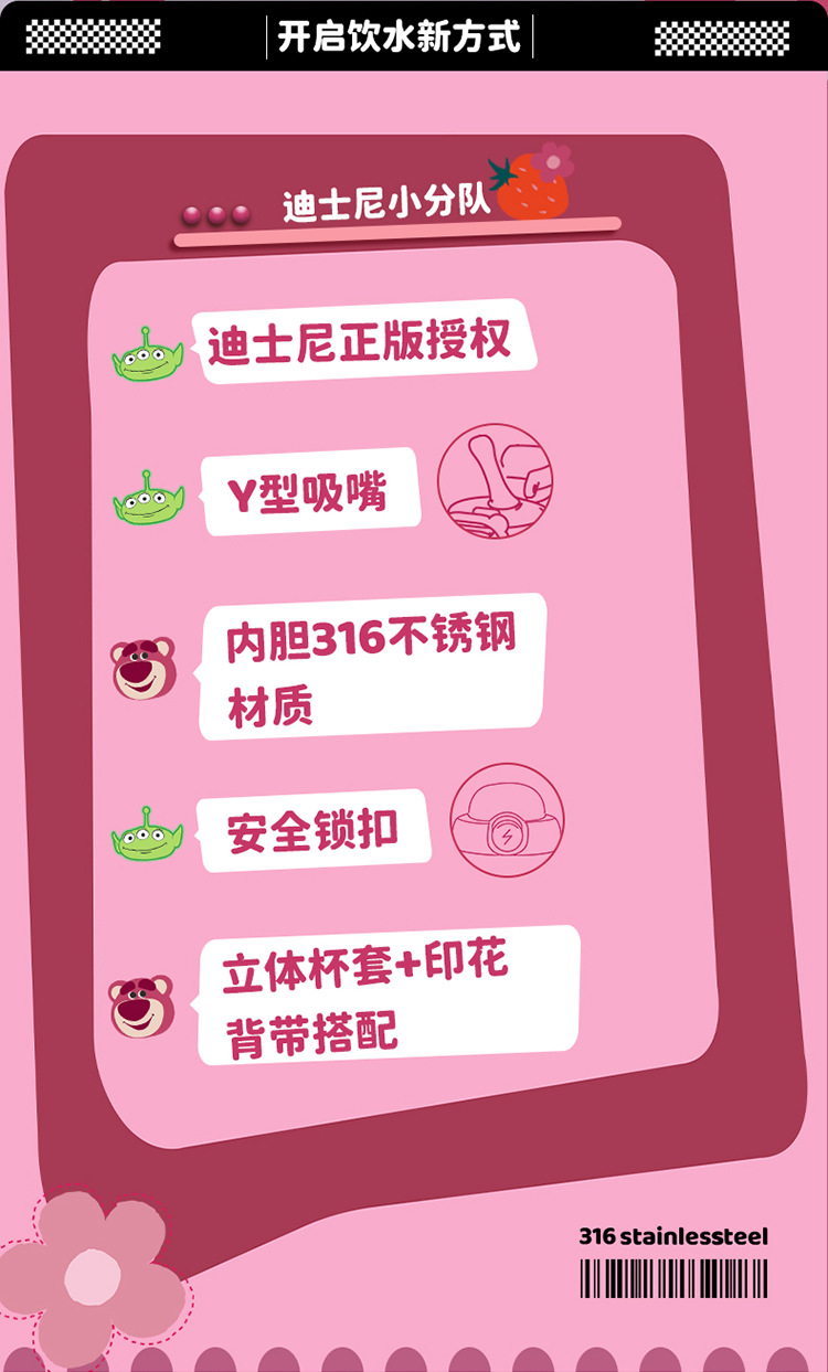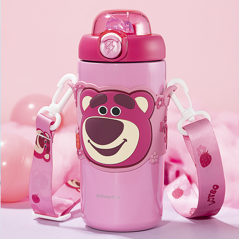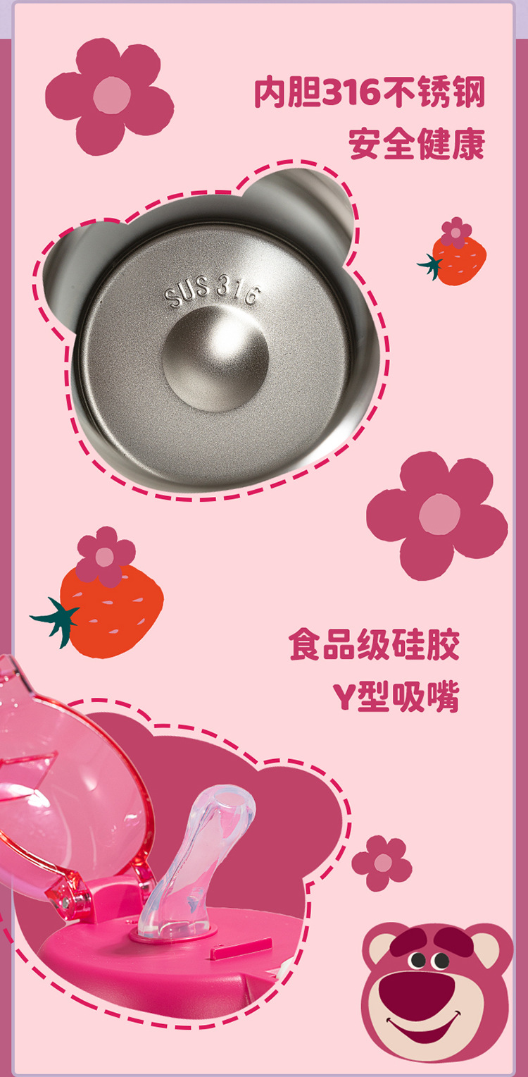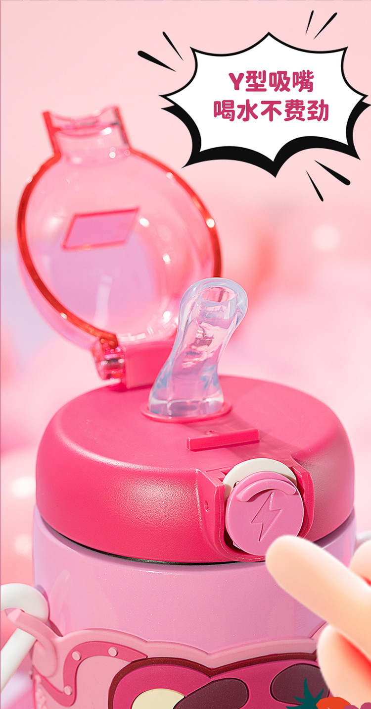 sanliou water cup new children 316 thermos cup cup with straw strawberry bear kettle school cute stainless steel 中文版