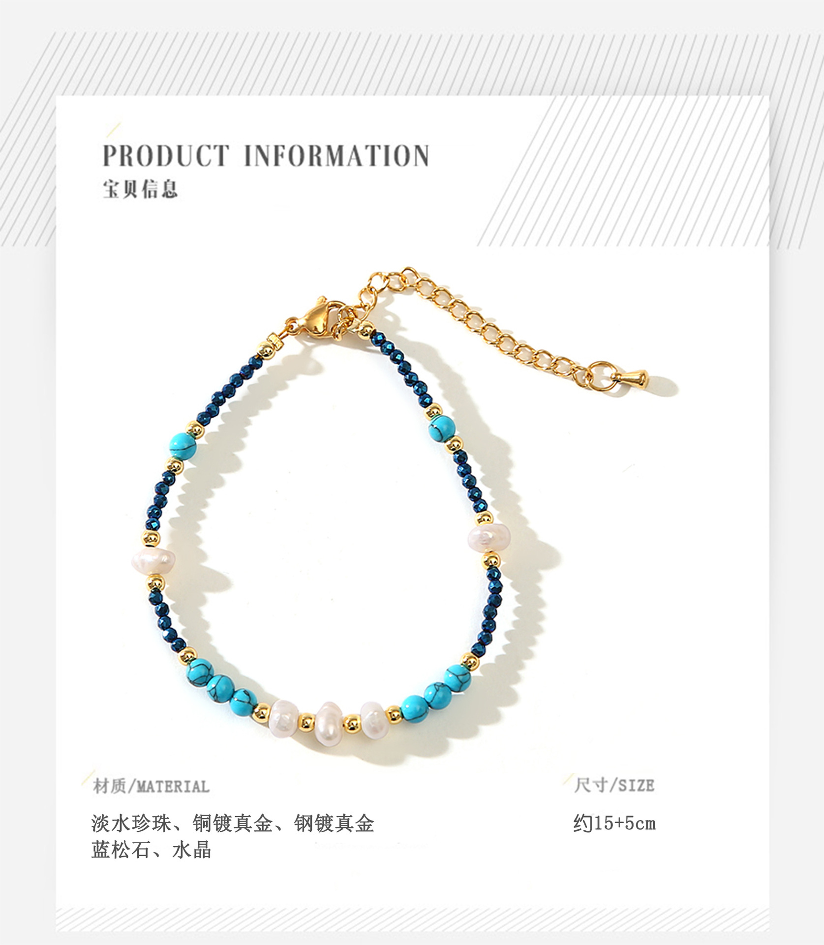 turquoise blue crystal pearl bracelet