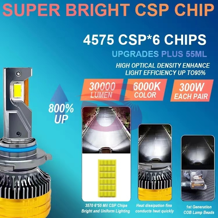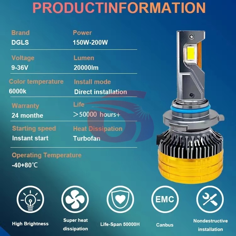Car LED headlight, high power 200W.