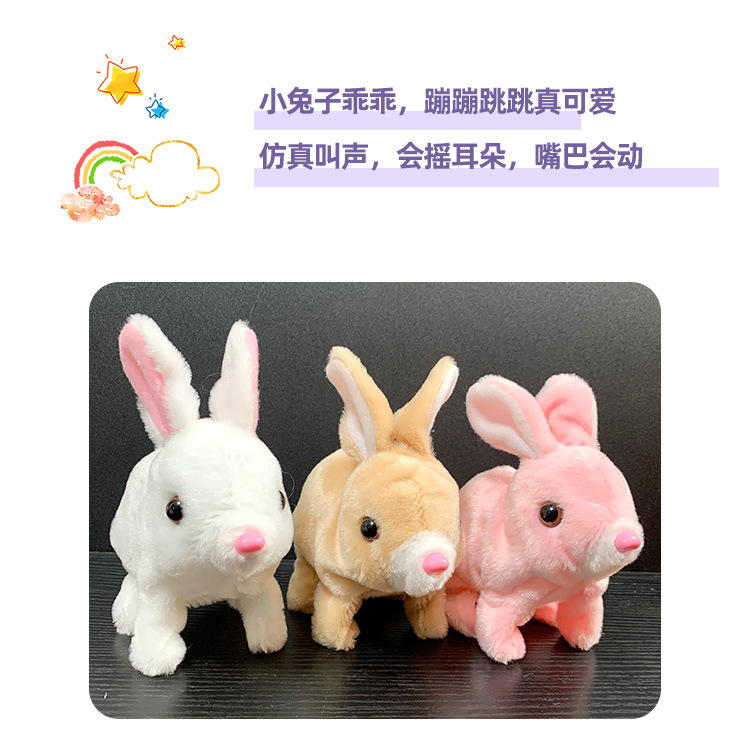 electric simulation pet plush toy little bunny can call and jump cute rabbit children's toy doll wholesale 中文版