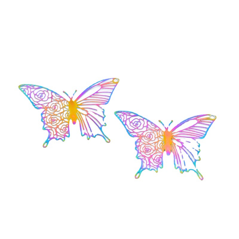 【Product Name】: Yellow Brass Bracelet Earring Necklace DIY Jewelry Accessories Wholesale TikTok Amazon Cross-border Model Hollow and Colorful Butterfly