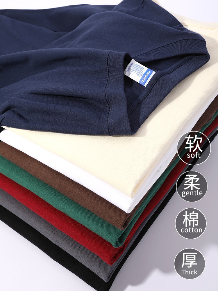 heavy 260g cotton long-sleeved t-shirt men's and women's solid color loose casual bottoming shirt thick not transparent can be outerwear autumn clothes 中文版