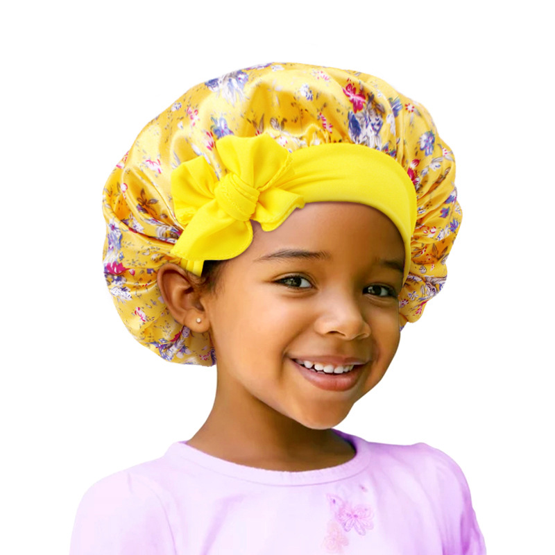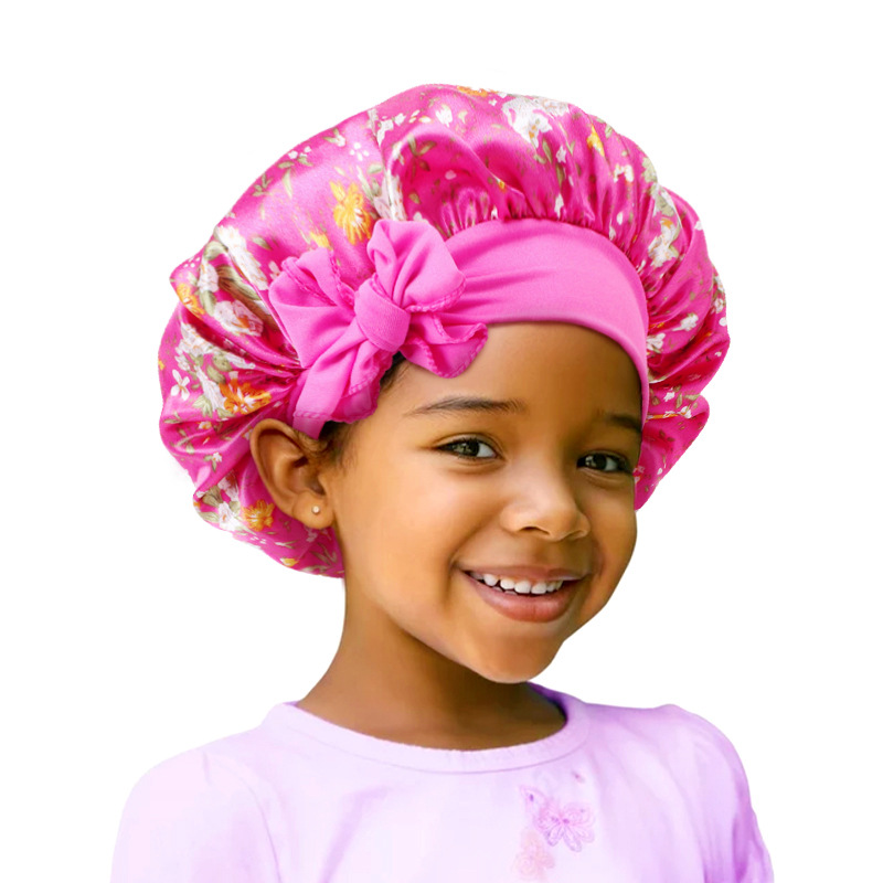 Cross-border children's hats with satin printing, baby cap with floating headband, bath capJDKB-21C