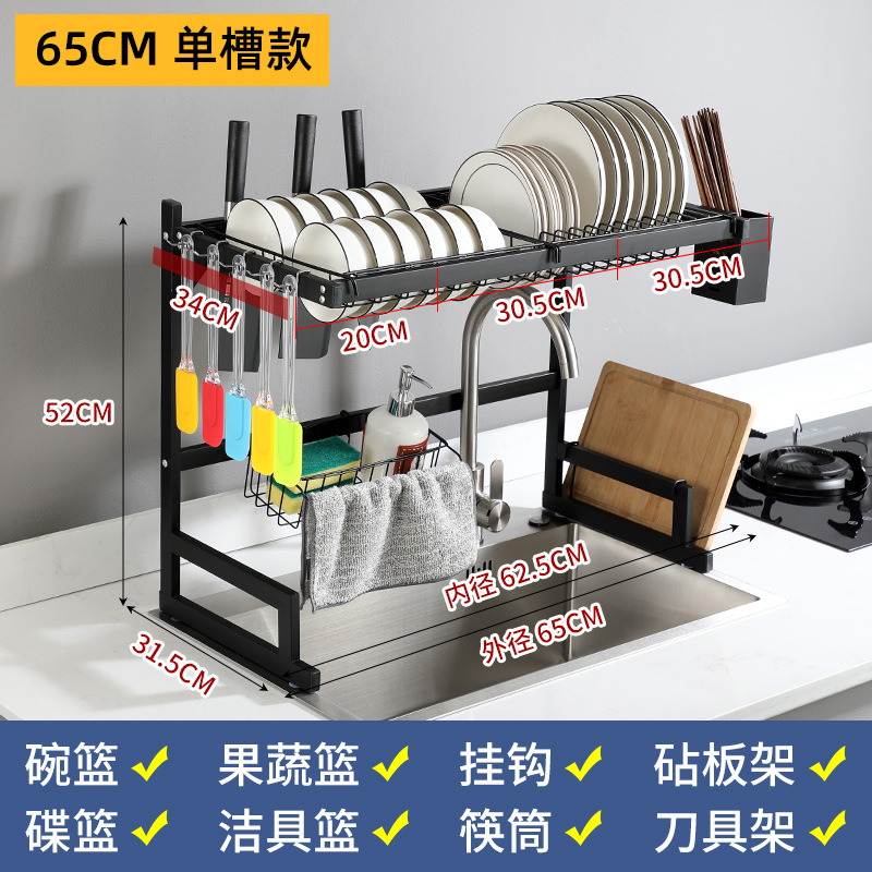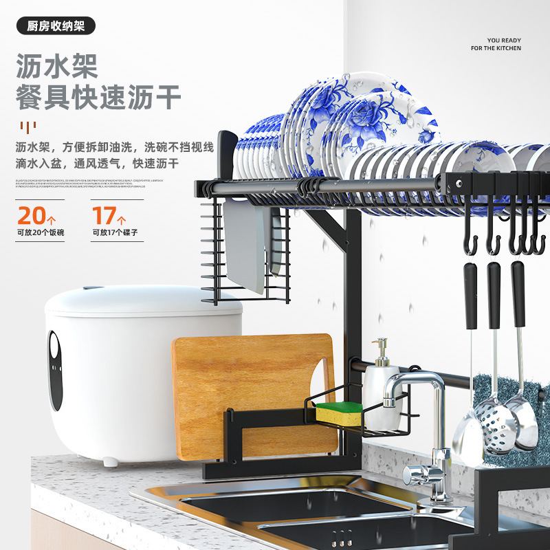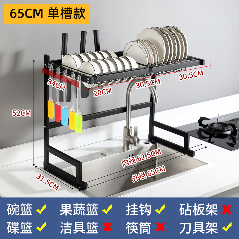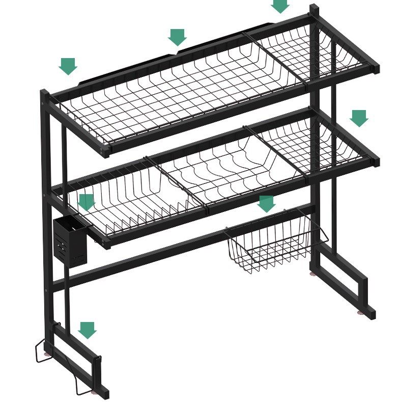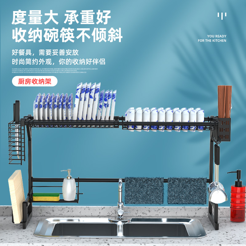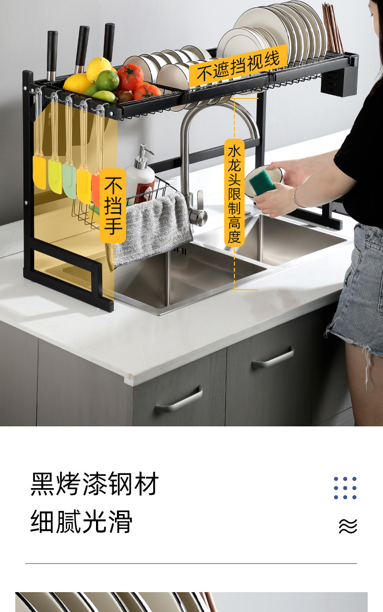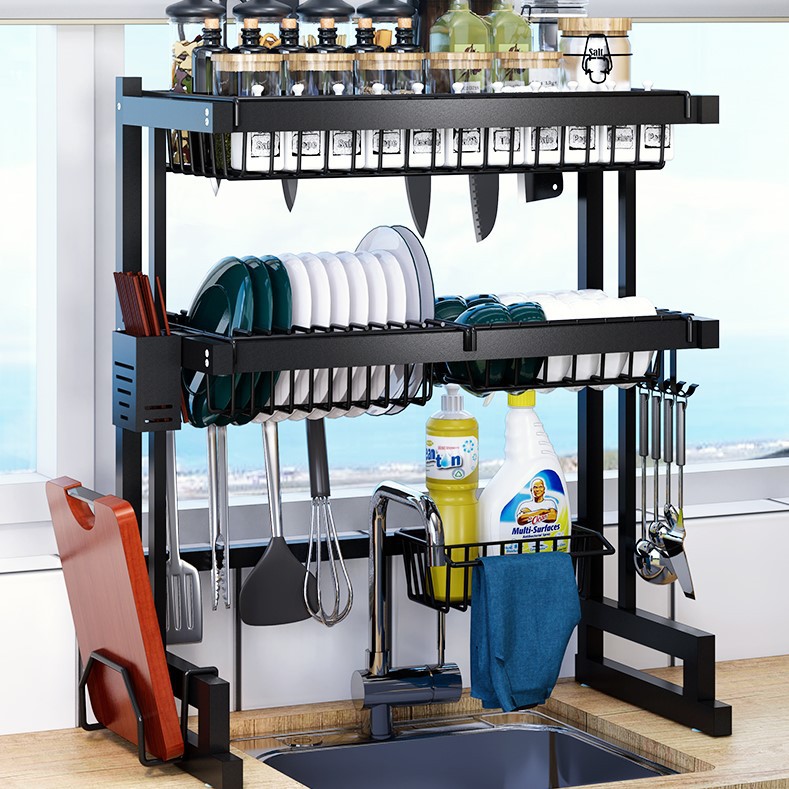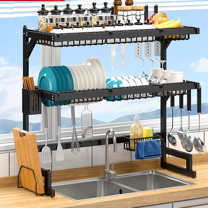 kitchen black carbon steel single double-layer sink table drain rack storage rack bowl rack bowl dish storage rack southeast asia