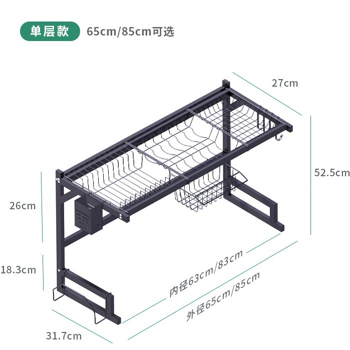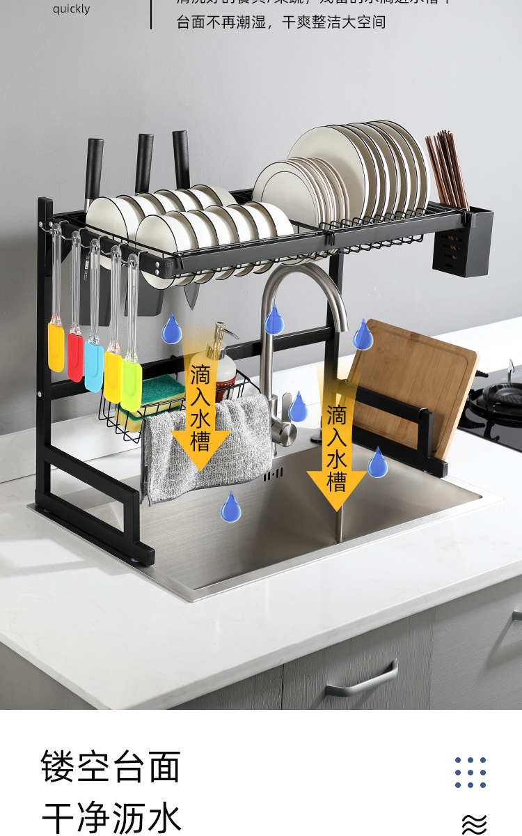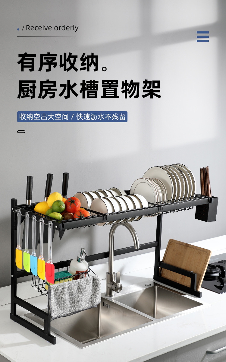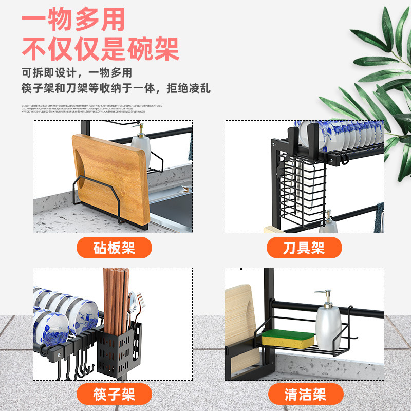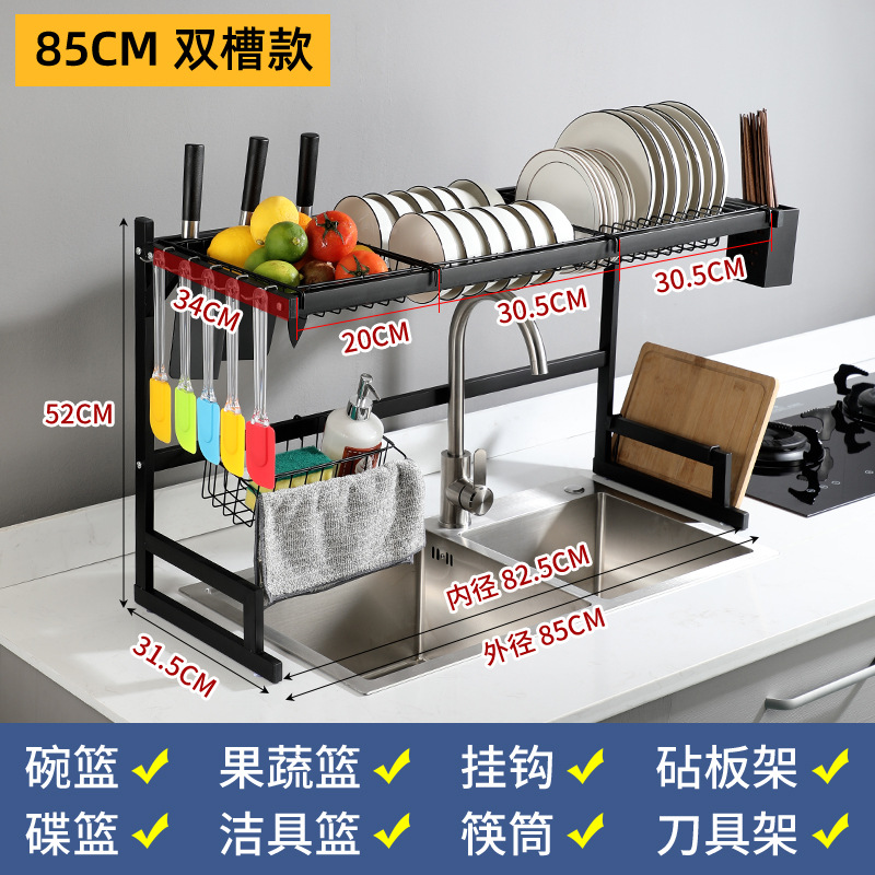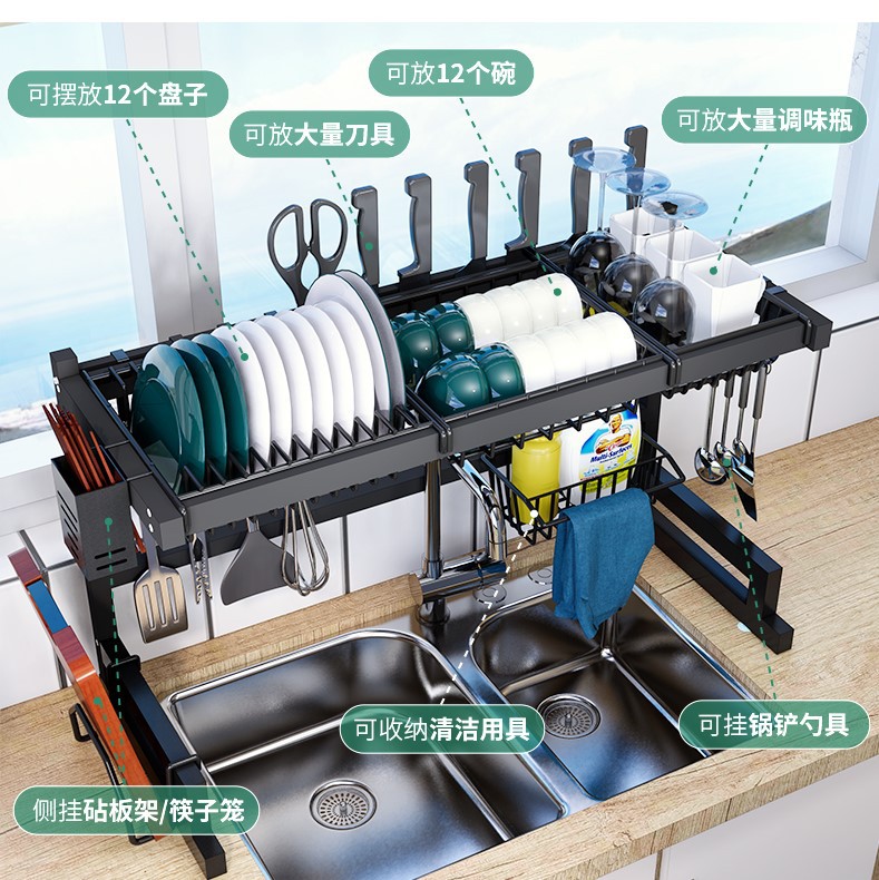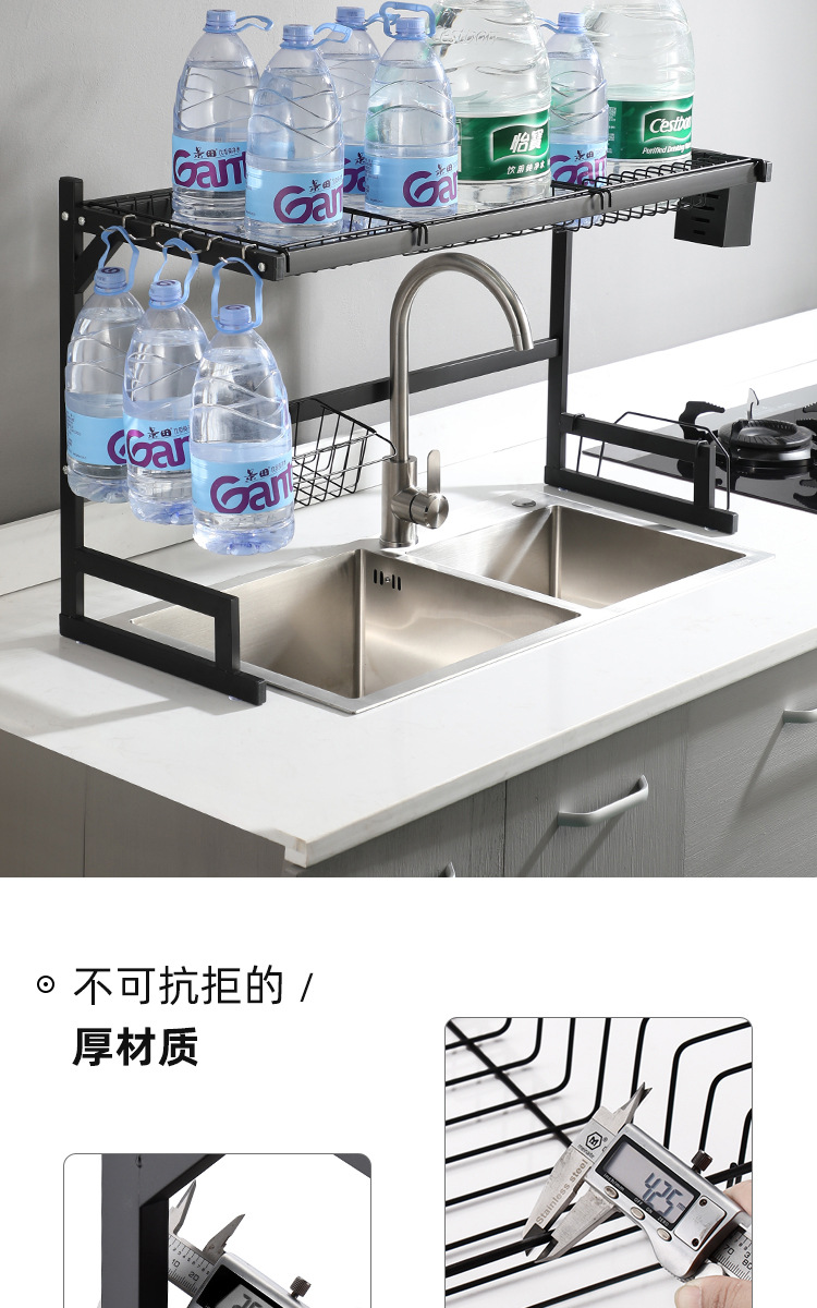 kitchen black carbon steel single double-layer sink table drain rack storage rack bowl rack bowl dish storage rack southeast asia
